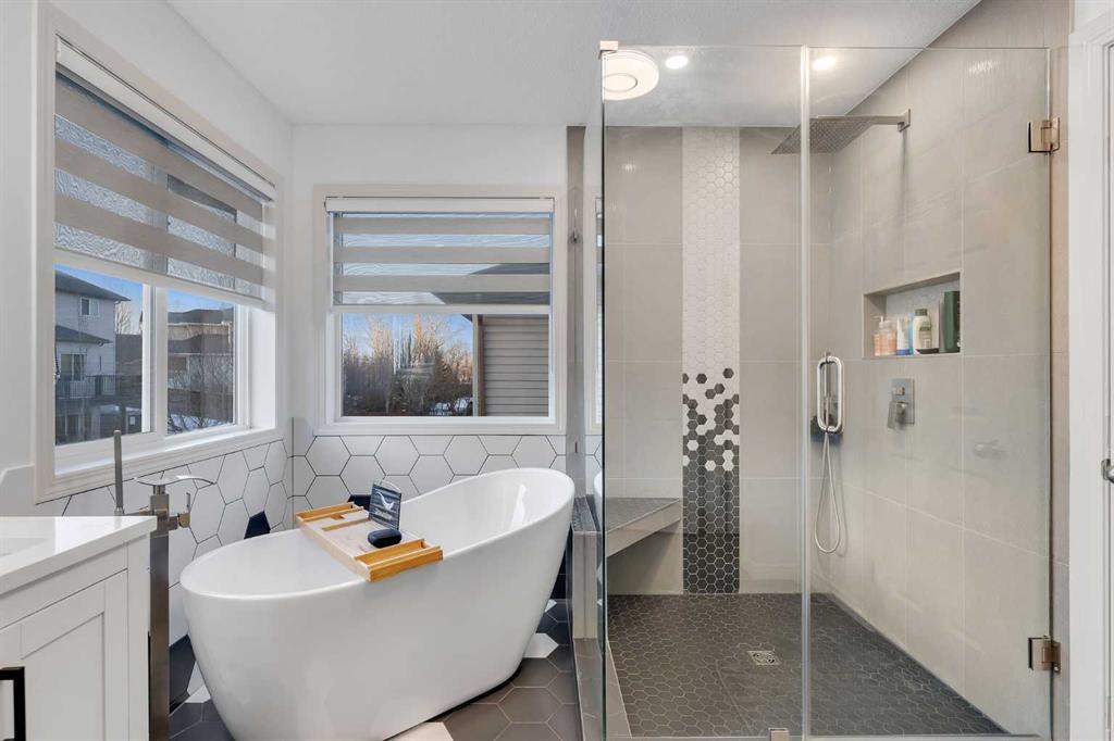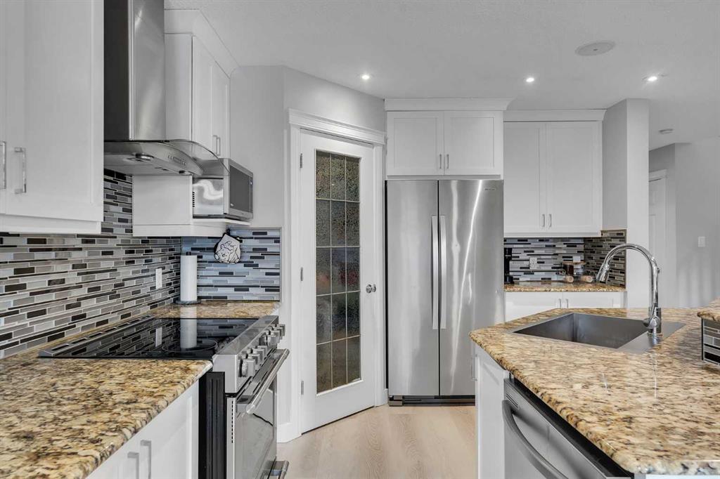RECENTLY RENOVATED – NEW FLOORING, KITCHEN, BATHROOM, LIGHTING!! HEATED OVERSIZED DOUBLE ATTACHED GARAGE (24.4′ X 22.3′)!! 3000+ SQFT OF LIVING SPACE!! 4 BEDROOMS 3.5 BATHROOMS!! BUILT-IN SPEAKER SYSTEM THROUGHOUT!! Welcome to this beautifully updated home offering space, style, and thoughtful upgrades throughout. The main floor features a private office, 2PC bath, convenient laundry room, and a bright living area with a cozy fireplace. The renovated kitchen showcases an island, modern finishes, and flows seamlessly into the dining area with direct access to the backyard deck! Upstairs offers newer carpet with thick underlay across the entire level. The PRIMARY BEDROOM is a true retreat with a luxurious 5PC ensuite designed with spa-like attention to detail — featuring a freestanding tub, custom finishes, LED heated mirror, and a walk-in closet. Two additional bedrooms share a fully renovated 3PC bath with a custom tiled shower. The vaulted ceiling bonus room with custom built-ins adds character and functionality, plus there is an additional office space with built-in cabinets and a window overlooking the bonus room. The fully developed basement expands your living space with a HUGE REC ROOM, an additional bedroom, and a 4PC bath. Step outside to the nicely updated, oversized back deck with trees, creating a private outdoor setting. The HEATED OVERSIZED DOUBLE ATTACHED GARAGE offers excellent storage and workspace. Additional upgrades include NEW ROOF (2024) WITH WARRANTY, A/C, and an active radon mitigation system. Located close to Prairie Waters Elementary School and St. Gabriel the Archangel School, with nearby parks, bike trails, and quick access to Highway 1 and 17th Avenue. A TURN-KEY HOME WITH SPACE, UPGRADES, AND AN UNBEATABLE LOCATION — DON’T MISS IT!!