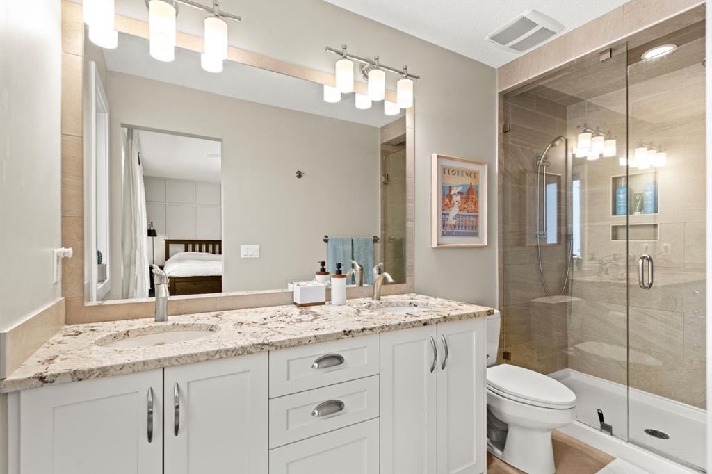 Welcome to Unit 2 at 123 12 Avenue NW, an exceptional opportunity to experience elevated inner-city living in the highly sought-after community of Crescent Heights. Crafted by the award-winning Millennium Plus Homes and lovingly maintained by its original owner, this stunning property is a true testament to quality craftsmanship and refined taste. Every detail has been carefully considered, from the oversized windows that bathe each room in natural light to the gorgeous skylight that adds an extra sense of openness and warmth throughout the home. The thoughtfully designed main floor welcomes you with an inviting open-concept layout, where a sleek low-profile gas fireplace sets the tone for sophisticated yet comfortable living. The kitchen is a standout feature, showcasing elegant granite countertops, a gas stove, brand new appliances, including a new fridge and a Bosch dishwasher, and finishes that will appeal to even the most discerning buyer. The upper level hosts a luxurious primary bedroom complete with a 4-piece ensuite and walk-in closet, alongside a second bedroom that has been thoughtfully converted into two separate rooms, offering excellent versatility for a home office, nursery, or additional sleeping space, with the option to easily revert back to a single bedroom if preferred, an additional 4-piece ensuite, and the added convenience of upper-floor laundry complete the upper level. Downstairs, the fully developed basement expands your living options with a generous rec room, a stylish wet bar, a third bedroom, and a full 4-piece bathroom, perfect for hosting guests or accommodating a growing household. Throughout the home you will find an impressive selection of upgrades including Hunter Douglas blinds, in-ceiling speakers, 3-piece door headers, a Lennox air conditioning system, and brand new washer and dryer. Outside, the low-maintenance artificial turf backyard offers a private and peaceful retreat with no seasonal upkeep. All of this comes with a remarkably affordable monthly condo fee of just $256, placing you steps from the vibrant amenities of Centre Street and minutes from the energy of downtown Calgary. Please note that garage access is available upon request for serious inquiries only. The water softener is a rented appliance under an ongoing subscription and is not included in the sale. Call today to book a private tour!