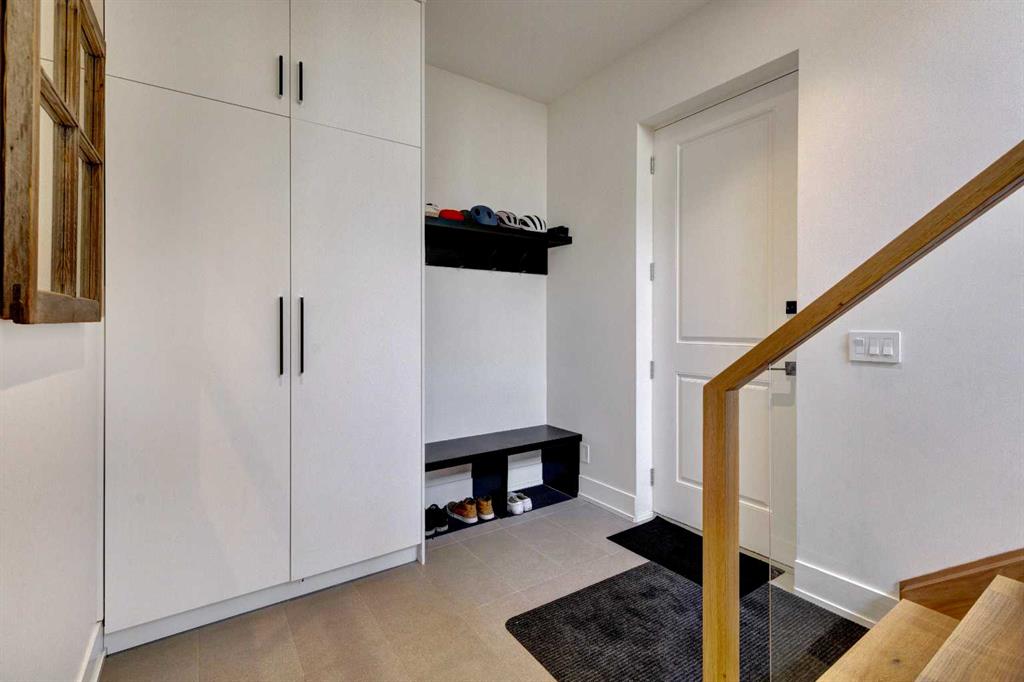 Located in the heart of Marda Loop, this oversized townhome offers 2,242 sq ft of thoughtfully designed living space, with room sizes and a layout rarely found in the area and comparable to many duplex and infill homes. Enjoy a walkable inner-city lifestyle close to shops, restaurants, parks, top schools, and Sandy Beach Dog Park, with an easy commute downtown. The open-concept main floor features a well-appointed kitchen with quartz countertops, a gas range, Bosch dishwasher, dark walnut cabinetry, and engineered white oak hardwood floors. A dedicated dining area flows into an impressive living room with large south-facing windows & a fireplace, creating a bright, welcoming space for everyday living and entertaining. An oversized deck extends the living space outdoors. A main-floor bedroom with a private deck offers excellent flexibility and can also be used as a home office, gym or guest room. Upstairs, the spacious primary suite features a private balcony, a walk-in closet with skylight and built-ins, and a well-finished ensuite with heated floors, double sinks, a soaker tub, and an oversized shower. Two additional bedrooms, a full bath, and a convenient upper laundry complete the upper level. The entry level provides ample storage and low-maintenance inner-city living in one of Calgary’s most desirable neighbourhoods.