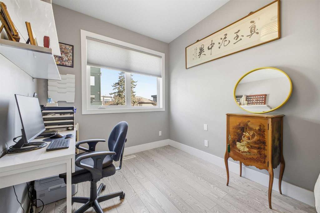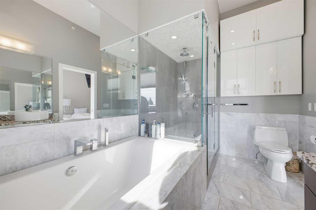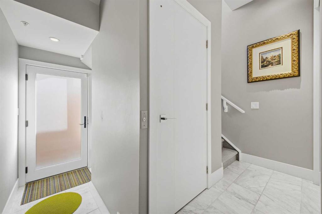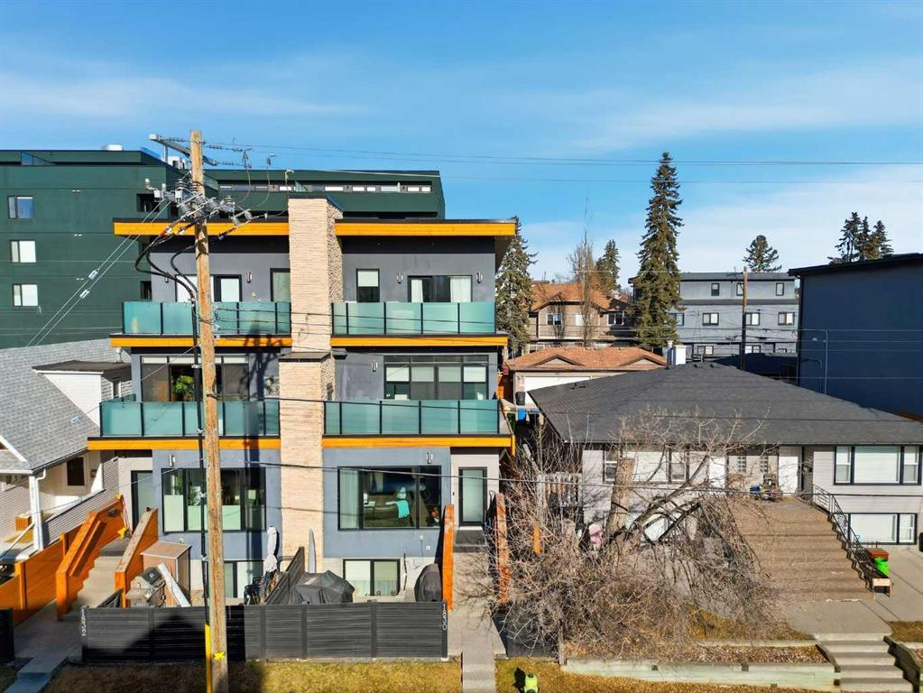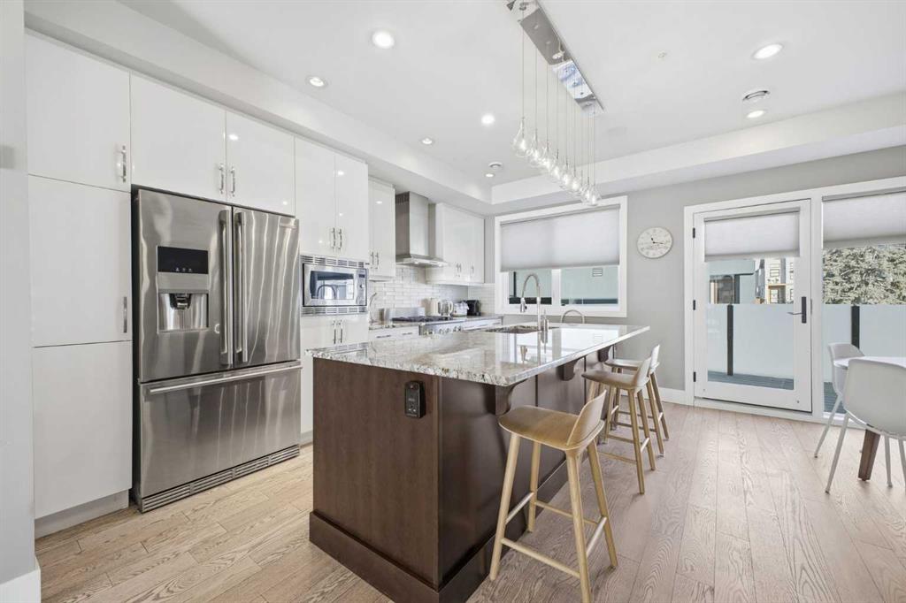 OPEN HOUSE SATURDAY, FEBRUARY 14TH FROM 2-4 PM. Gorgeous upscale 3 bedroom townhome in the heart of South Calgary offering over 2100 sq ft of living space & an ELEVATOR SERVING ALL 3 LEVELS! The open & airy main level presents wide plank hardwood floors, lofty ceilings & is drenched in natural light, showcasing the spacious living room that’s anchored by a feature fireplace & has access to a private deck with outdoor fireplace. The dining area with stylish light fixture provides ample space to host family & friends & seamlessly flows into the kitchen that’s tastefully finished with granite counter tops, island/eating bar, plenty of storage space, stainless steel appliances & cozy breakfast nook with access to the north balcony with BBQ gas hookup. A 2 piece powder room completes the main level. The second level hosts 3 bedrooms plus 4 piece main bath & laundry facilities. The generously sized primary retreat with private balcony boasts a walk-in closet & luxurious 5 piece ensuite with marble flooring, dual sinks, relaxing soaker tub & rejuvenating steam shower. Other notable features include an elevator, central air conditioning, built-in speakers & single attached garage. The prime location is incredibly convenient, walking distance to vibrant Marda Loop, River Park, Marda Loop CA, schools, shopping, public transit & effortless access to 14th Street & Crowchild Trail.