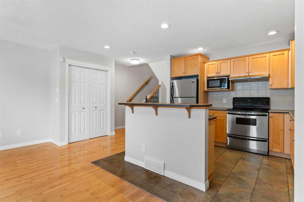 Welcome to this beautifully maintained townhouse offering over 1,700 sq ft of comfortable living space in a fantastic central location. Thoughtfully refreshed with new carpet, modern paint throughout, updated lighting, and new electrical switches and outlets, the home blends tasteful updates with pride of ownership in its well-kept original features. Perfectly positioned for convenience, you’re just 5 minutes to Mount Royal University, 10 minutes to downtown and the University of Calgary, and minutes from multiple bus and C-Train routes—making this an ideal home for downtown commuters, work-from-home professionals, or a young family. Step inside to a spacious tiled entryway with a conveniently located powder room. From here, stairs lead up to the main living area or down to the fully developed lower level. The sun-filled main floor is designed for both everyday living and entertaining, featuring an open-concept kitchen and living room anchored by a cozy corner gas fireplace. A charming breakfast nook leads to a second entrance providing easy access to the west-facing patio and BBQ area, as well as the detached single garage. Upstairs, you’ll find three well-sized bedrooms and two full bathrooms, including a generous primary suite with ensuite, plus the convenience of upper-level laundry. The fully developed basement family room offers flexible space for movie nights, games, entertaining, or easily accommodating guests with the addition of a Murphy bed. A separate lower level provides ample room for utilities and additional storage. Outside, enjoy a private west-facing patio perfect for evening BBQs, along with the convenience of a detached single garage.