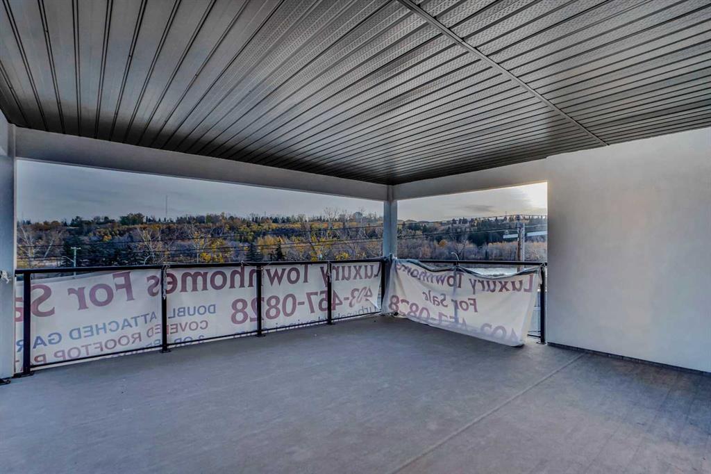 One of the home’s most impressive features is the **covered rooftop terrace offering breathtaking river views** — an incredible space to relax, entertain, or enjoy Calgary’s beautiful year-round scenery. Additional highlights include **upper-level laundry, recessed lighting, low-flow plumbing fixtures, private entrance, BBQ gas line, landscaped surroundings, underground sprinklers, and durable exterior construction with concrete, metal siding, and stucco**.