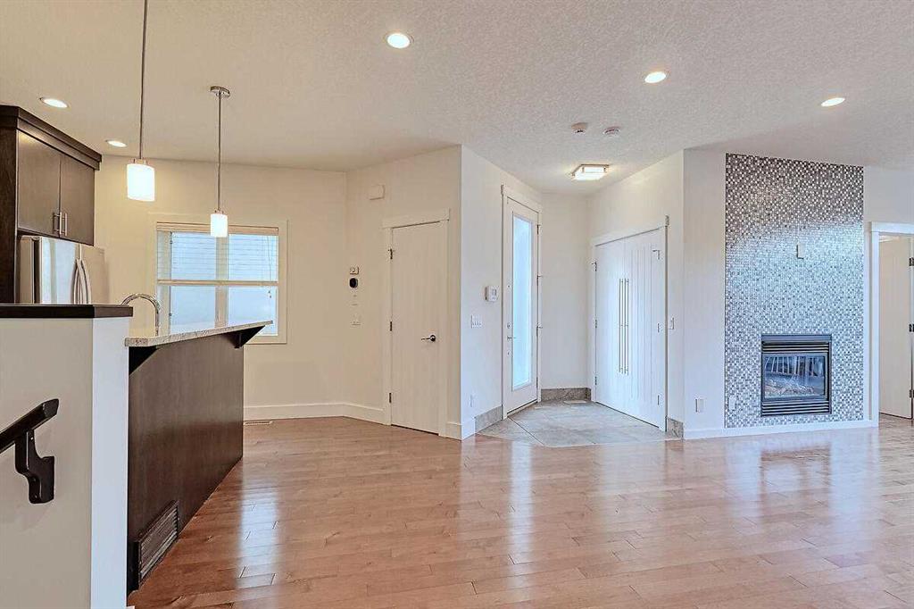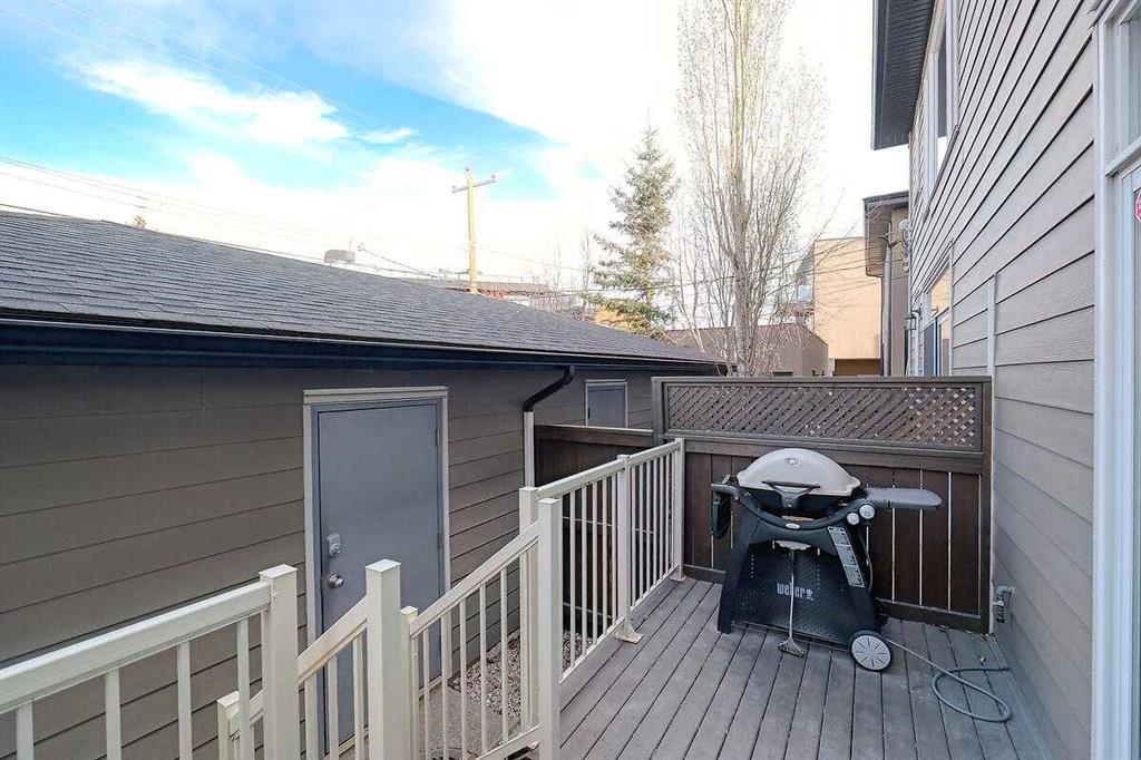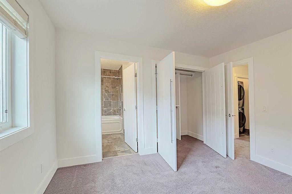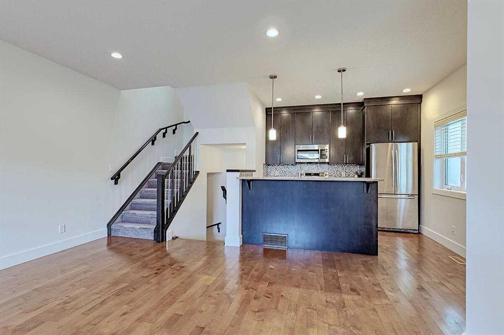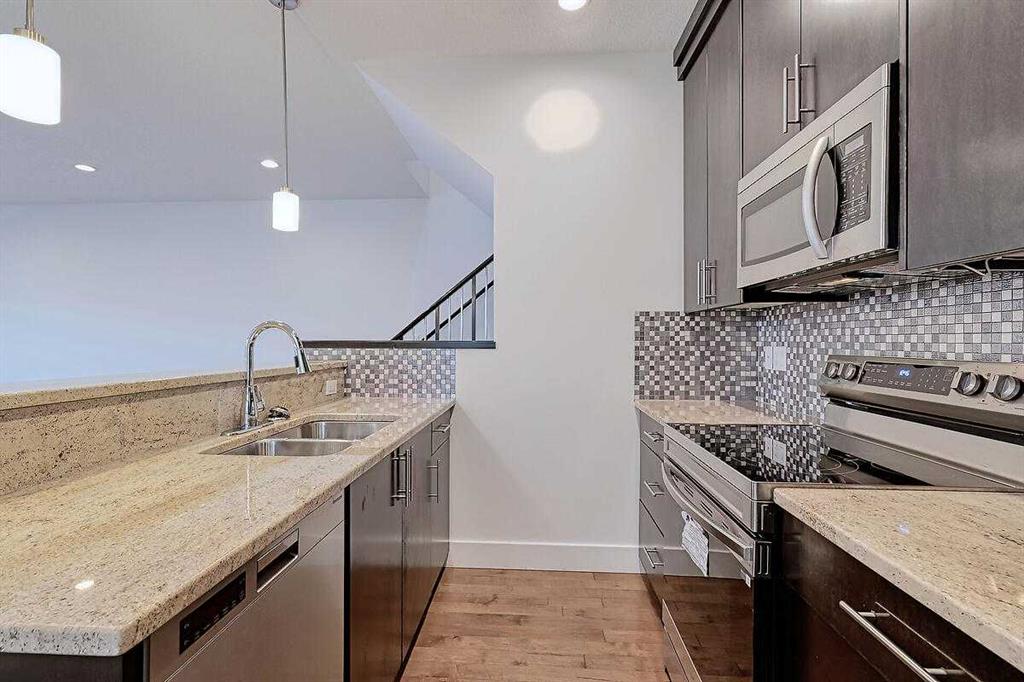 Immediate Possession Available. Stylish and well-maintained 3-bedroom, 3.5-bath townhouse offering a bright open floorplan with high ceilings and Makibois Maple hardwood throughout. Spacious front entry with walk-in closet. Living room features a gas fireplace and sliding doors to the private back deck and single detached insulated garage. Kitchen showcases Astoria Granite countertops, stainless steel appliances (new stove), tiled backsplash, dual sinks, pantry, and raised eating bar. Upper level includes two bedrooms with tiled en-suites and walk-in closets, skylight, ceiling fan, and convenient upper laundry. Fully finished basement with large family room, Third bedroom, rough-in for fourth bathroom, and ample storage. Air conditioning, Heat pump cooling system, and sealed sump pump. Back deck for BBQ’s, entertaining and space for pets. Excellent location close to downtown, transit, shopping, restaurants, and amenities. Please see full Virtual Tour.