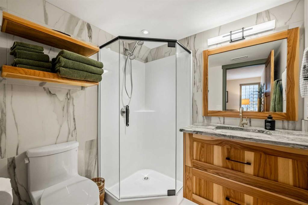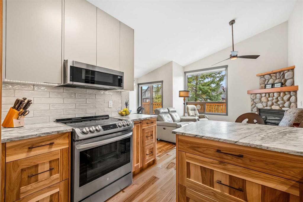 Located in one of Canmore’s most desirable neighbourhoods, this beautifully updated 4-plex unit has been comprehensively transformed by the original owner with premium finishes throughout. Rich Hickory hardwood floors and custom Hickory interior doors flow through the open-concept living and dining area beneath soaring vaulted ceilings, anchored by a stunning river rock fireplace. The private deck and living room frame spectacular Rocky Mountain views year-round.