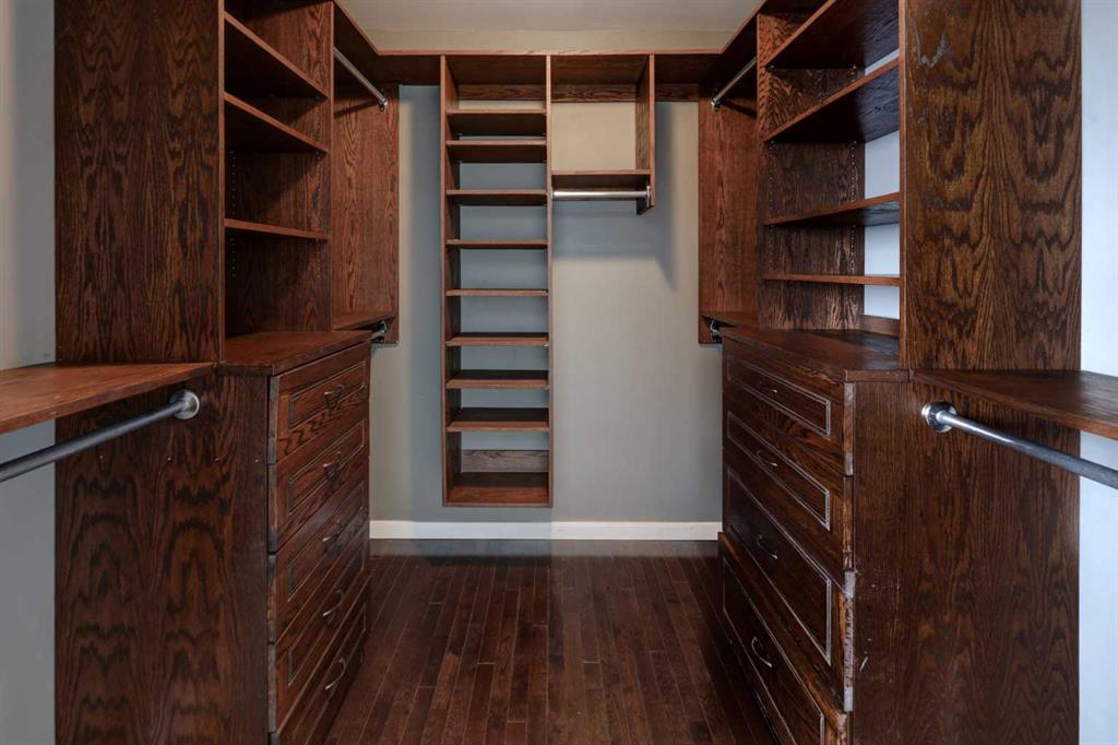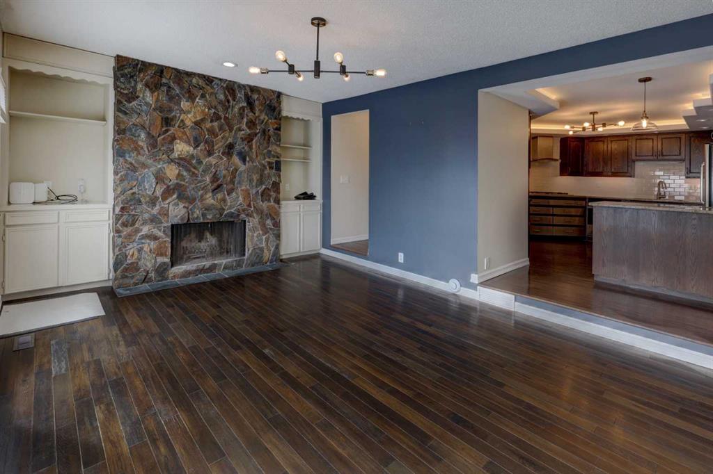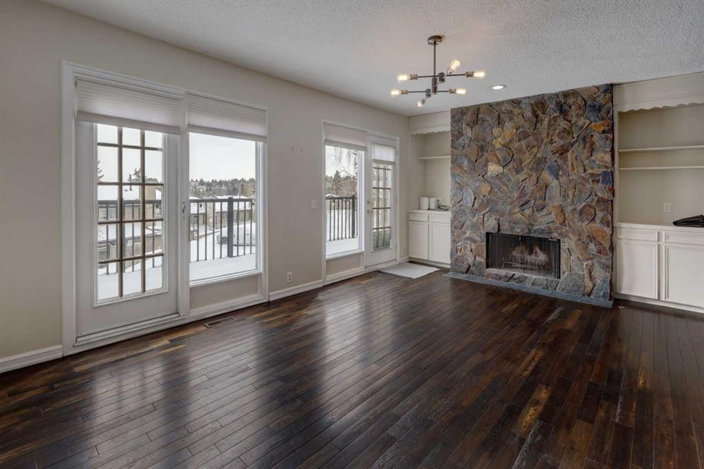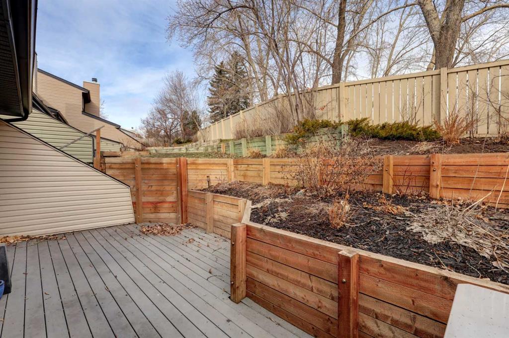 Welcome to this beautifully updated end-unit condominium in the highly sought-after community of Strathcona Park SW. This spacious three-level split offers 3 bedrooms and a thoughtfully designed layout that blends comfort, style, and functionality—perfect for modern living. The main level features a versatile den, ideal for a home office or flex space, along with a stunning custom kitchen renovation showcasing high-end appliances, bespoke cabinetry, and exceptional attention to detail. Rich hardwood flooring adds warmth and continuity throughout the home. Upstairs, the primary retreat is a standout, complete with a walk-in closet featuring custom cabinetry and a fully renovated ensuite. All bathrooms in the home have been recently updated, offering a fresh, contemporary feel. Enjoy cozy evenings by one of two wood-burning fireplaces, both equipped with convenient gas lighters. Mechanical upgrades provide peace of mind, including a new furnace, hot water tank, and air conditioning system installed in 2023, along with a radon reduction system (approx. $4,000 value) and an upgraded electrical panel completed 5 years ago. Additional highlights include a large storage room with a full-size safe, extra crawl space storage in the attached double garage, and a brand-new Samsung washer and dryer (2025). Outdoor living is equally impressive with two outdoor decks—one southeast-facing for morning sun, and a second, more private rear deck backing onto green space. A perfect location – enjoy direct access to city walking paths and a serene natural setting. Ideally located, this home offers quick access to downtown (approximately 10 minutes), the University of Calgary, and major routes leading west to the mountains—making weekend escapes effortless. A rare opportunity to own a turnkey home in an established, family-friendly community.