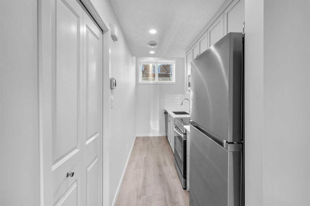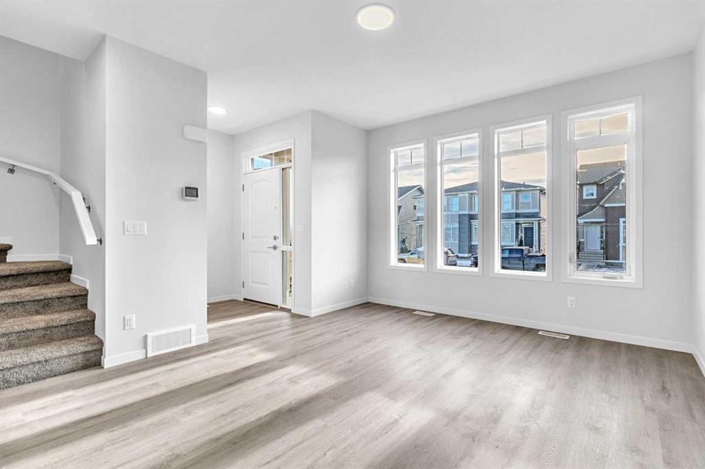 The 9-ft high main floor with textured ceiling & LVP flooring opens to a bright family room leading to the dining area, with a fully upgraded kitchen at the back. The main floor kitchen makes an immediate statement with its rich 2-tone cabinetry, bright quartz countertops, and subway backsplash that adds depth & character. Upgraded appliances include chimney hood fan, 3-door fridge with bottom freezer, stylish stove, AND built-in microwave oven giving a contemporary edge while the oversized island provides both gathering space and practical prep area. The stairs lead up to a loft opening to the primary bedroom on 1 side with an ensuite featuring a 5-ft shower with glass door, 2 bedrooms on the other side, a stylish main bathroom, and a dedicated laundry room for everyday convenience. A separate side entrance leads down to a fully legal one-bedroom suite with its own kitchen (featuring its own window), living room, laundry, and bathroom. The fenced backyard is no-maintenance featuring CONCRETE patio. Near the D’Arcy Ranch Golf Club and the D’Arcy Crossing shopping area, and just steps from the new K-9 Separate School (projected completion Fall 2027), you’ll love the walkability and community feel. And enjoy quick access for an easy commute to Calgary if necessary.