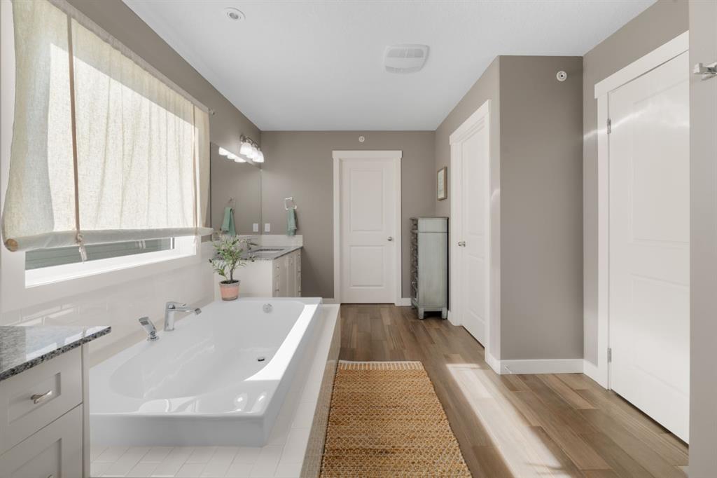 Upstairs, you’ll find three generous bedrooms including a spacious primary retreat complete with a walk-in closet and a luxurious 5-piece ensuite. The large bonus room is a dream space for growing families — perfect for movie nights, a kids’ play zone, or a relaxing lounge. An upper-level laundry room with sink adds everyday convenience right where you need it most.