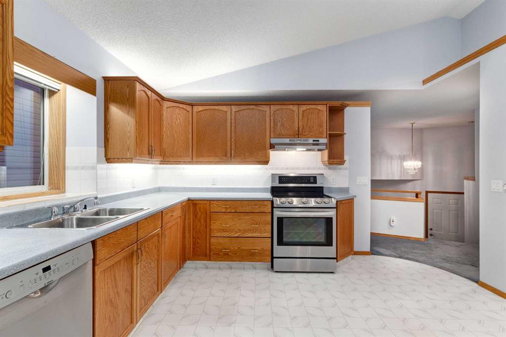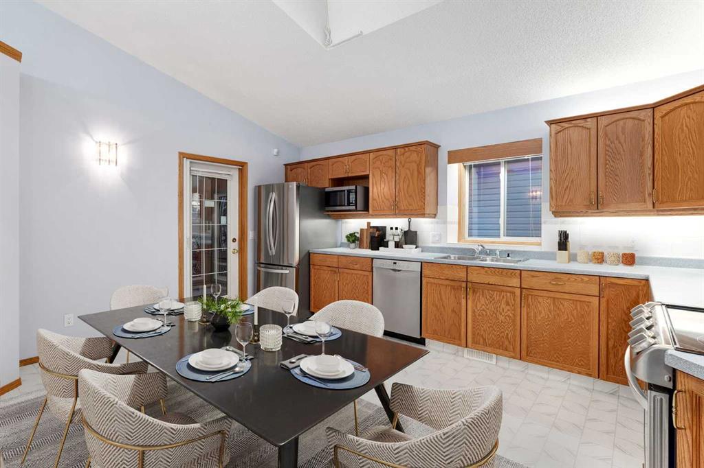 Welcome to this CHARMING Bi-Level Home w/1,747.93 SQ FT of DEVELOPED SPACE, 3 Bedrooms, 3 FULL Bathrooms, + a DOUBLE ATTACHED GARAGE (21’4” x 17’4”). NESTLED on a LARGE 4,800 SQ FT LOT in the FAMILY-FRIENDLY community of WILLOWBROOK, this home boasts FANTASTIC curb appeal w/landscaping + MATURE TREES. Step through the front door to a SPACIOUS FOYER with NEUTRAL Colour Tones, LINOLEUM Flooring + HIGH CEILINGS – the beginning of the home’s Inviting Charm. The MAIN LEVEL features an OPEN-CONCEPT LAYOUT designed for ENTERTAINING. The LIVING ROOM is BRIGHT + INVITING thanks to a LARGE WINDOW that fills the space w/NATURAL LIGHT – perfect for FAMILY GATHERINGS or RELAXING w/a book. The ‘Heart of the Home’ is outfitted with OAK CABINETRY, a TILED BACKSPLASH, SS APPLIANCES, + VAULTED CEILINGS w/a SKYLIGHT equipped w/CUSTOM SKYLIGHT BLINDS (2025). The CONNECTED Dining Room is PERFECT for those meals around the table w/FAMILY, + FRIENDS as you share laughter, + make memories. A door leads directly out to the MUDROOM that connects you to the NORTH-FACING Backyard for easy outdoor access.