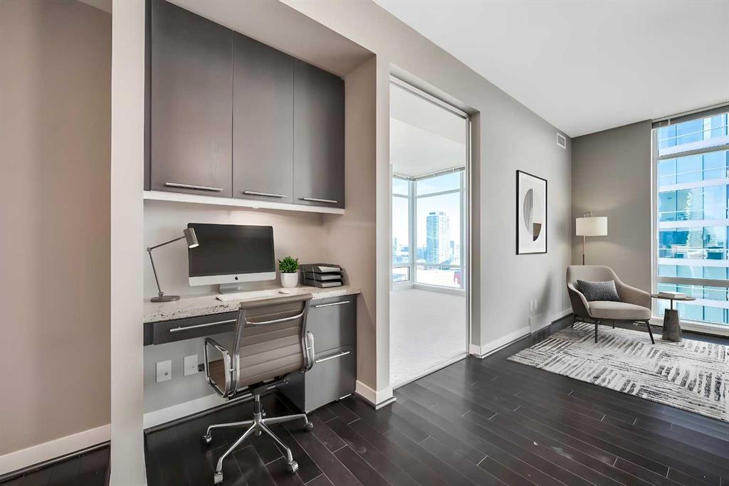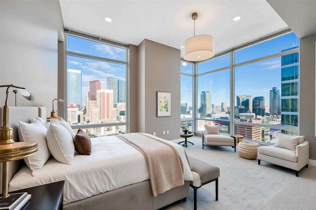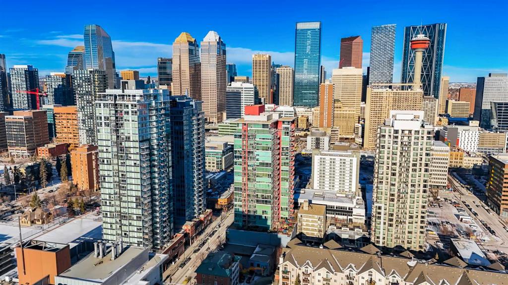 Discover elevated urban living in this gorgeous 20th-floor corner unit in the concrete Union Square building, located in Calgary’s vibrant Beltline. This 2 BED, 2 BATH condo offers a spacious layout with over 900 SQ FT, and with floor-to-ceiling windows showcasing spectacular Downtown Calgary views. The open-concept living and dining area is flooded with natural light and features rich upgraded hardwood throughout. The modern kitchen features stainless steel appliances and ample storage, ready for all your cooking needs. The generously sized primary bedroom boasts a large ensuite bathroom, while the second bedroom and full bathroom provide privacy and convenience, ideal for guests or a home office. Additional highlights include in-suite laundry, a private balcony, heated and titled underground heated parking, and additional dedicated storage locker. Central A/C! Just a few short blocks from Calgary’s downtown core, this unit places you steps from some of the city’s best restaurants, cafes, and amenities. Enjoy easy access to green spaces, bike paths, convenient routes in and out of the city, and nearby landmarks including Stampede Park, the Saddledome, and the LRT—perfectly blending comfort, style, and urban convenience. You don’t want to miss this one! Union Square sits nestled in between restaurants and shops in a mini entertainment district on 1st St SW.