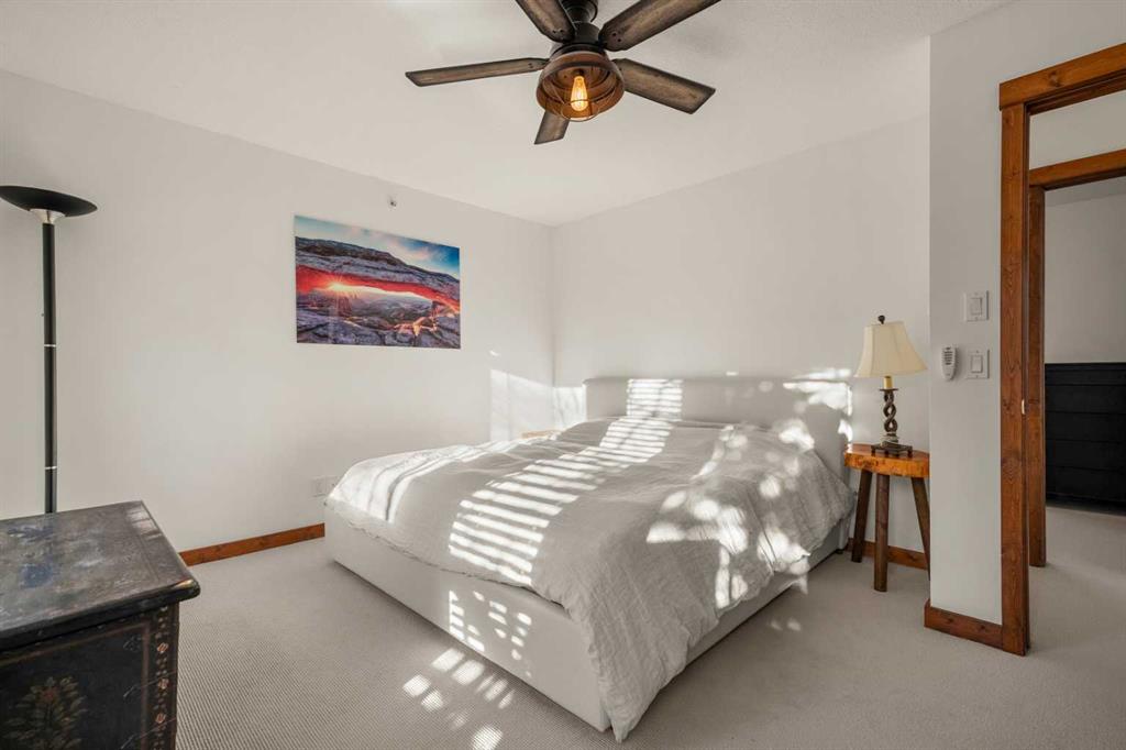 Upstairs, the two bedrooms are well-proportioned, with the primary bedroom featuring its own 2-piece ensuite and walk-in closet, in addition to a full bathroom serving the upper level and a convenient half bath on the main floor. In-floor heating on the lower level efficiently complements the forced air furnace, providing comfortable and consistent warmth, particularly during the winter months. A rare and highly desirable double car garage sets this unit apart, offering excellent storage and secure parking that is increasingly hard to find in The Bow Valley. With reasonable condo fees and a location close to the new Gateway shopping centre, OLS school, Stewart Creek Golf club and an extensive network of walking and biking trails, this home offers an ideal blend of space, functionality, and mountain lifestyle in one of Canmore’s most accessible neighborhoods.