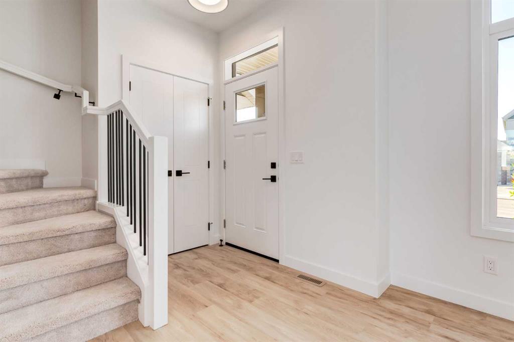 Welcome to the Hudson by Rohit Homes, a well-appointed 3 bedroom, 2.5 bathroom duplex in Tillotson – Okotoks’ newest community. This home features an open concept main floor, full-height kitchen cabinetry, quartz counters throughout, a large peninsula island, stainless steel appliances, upper floor laundry and a separate side entrance for future basement development. Finished in the Haute Contemporary palette, the interior feels bright, modern and thoughtfully put together. The main level is designed for everyday living, with oversized windows that bring natural light into the kitchen, dining and living areas. Clean lines, cohesive finishes and a convenient two-piece bathroom complete this floor. Upstairs, the primary suite offers a comfortable retreat with a walk-in closet and an ensuite featuring a dual vanity. Two additional bedrooms, a full bathroom and upper floor laundry add practicality for busy households. Tillotson is a brand new master-planned community focused on walkability, green spaces and future amenities – a well-rounded setting for homeowners looking for comfort and long-term value. This home also includes full new home warranty coverage for added peace of mind. Don’t miss the chance to explore Okotoks’ newest community!