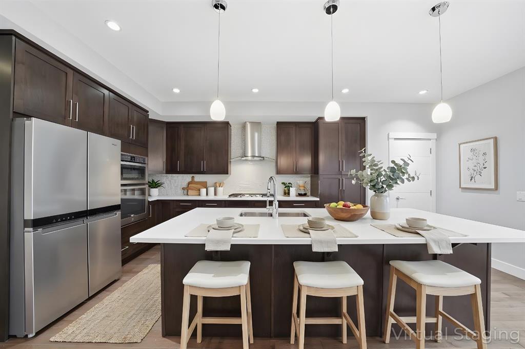 From the moment you step inside, you are greeted by a sun-drenched, open-concept main floor. Picture cozy winter evenings by the gas fireplace, surrounded by custom built-ins and rich hardwood floors. At the center of it all is a gourmet kitchen that truly acts as the heart of the home. It’s a space meant for gathering, featuring a massive social island and premium appliances—including a high-end refrigerator and washer both upgraded in 2025. When you need a retreat, the upper-level primary sanctuary awaits, offering a spa-inspired ensuite and a sprawling walk-in closet.