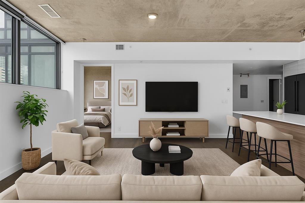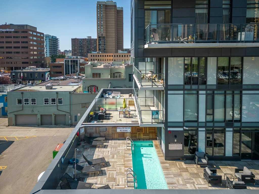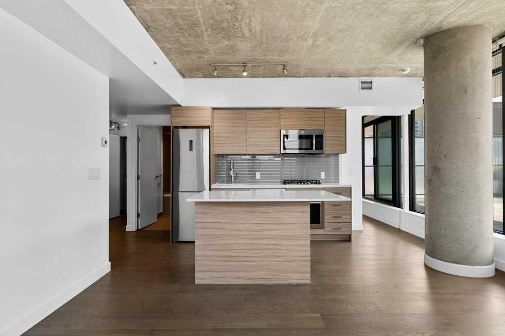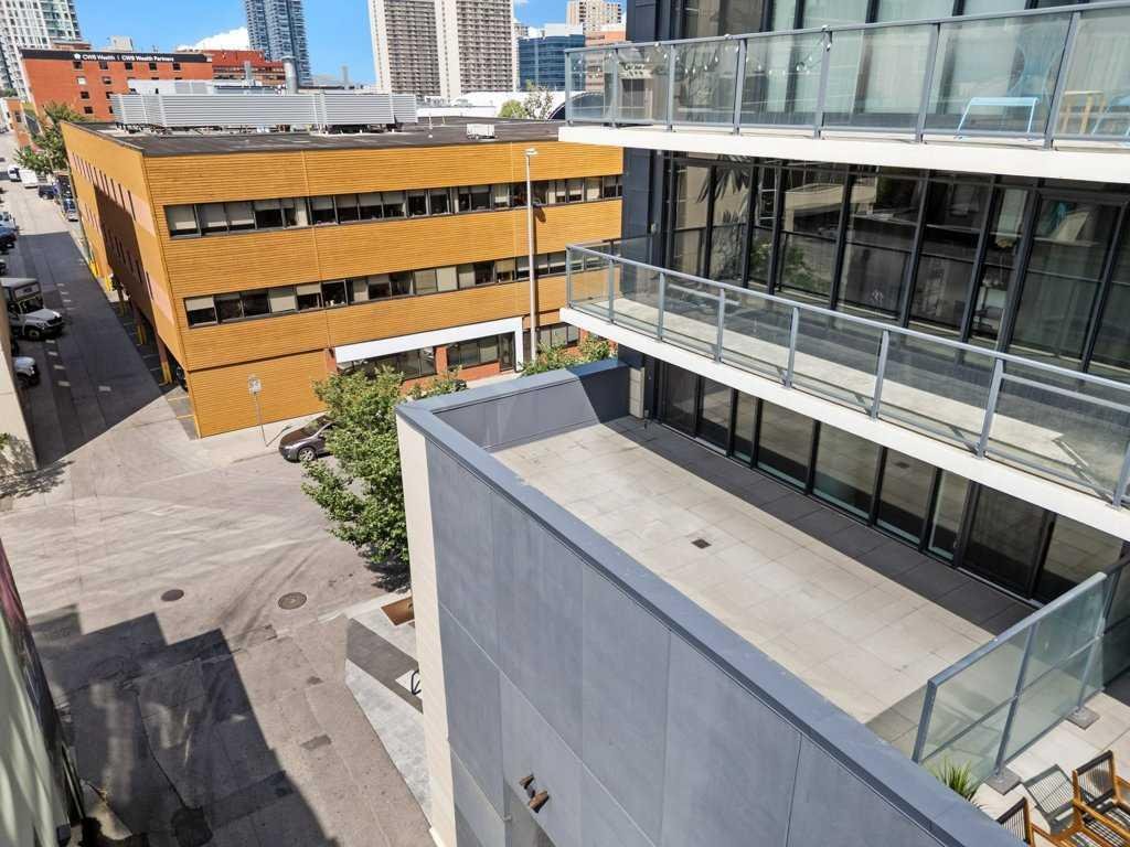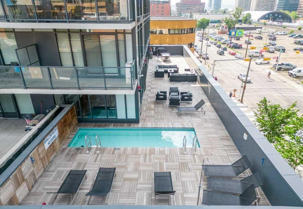 An AIRBNB dream investment with this nearly 500 sqft south facing outdoor patio terrace at 6th And Tenth. Creating a unique + memorable stay are how short term rental properties get booked more frequently and here you have a bright, open concept 2 bed + 2 bath layout with a giant exterior space that is drenched in sunshine – perfect for our seasonal months. Clean lines, modern designs, wall to wall windows + industrial loft-like concrete finishings make this space feel as unique as you are. Easy hosting access in and out create a home run feel for all your entertaining needs. Utilize the flex space next to the entry for a games area, dining room or home office. The primary bedroom is highlighted with the concrete feature wall, impressive windows, stylish en-suite bathroom and walk-in closet with organizers to really maximize the possibilities with your wardrobe. The second bedroom enjoys access out to the terrace and has a spacious dual door closet. The unit also comes with in-suite laundry, underground parking stall + storage locker. What to talk about convenience? How about having all the building’s amenities on the same level. Enjoy the fitness room, owner’s lounge + outdoor pool deck right outside your door. Also boasting executive concierge, loading dock, bike storage, exterior water features + an onsite Italian restaurant, you will feel right at home at 6th And Tenth. Showcasing a WalkScore of 97, this is one of the most enviable locations in the city as you are close proximity to fine restaurants, beer halls, cocktail bars, coffee shops, boutique shopping, grocery stores, c-train line and downtown office core. Please inquire for the financial projections on this smart investment!