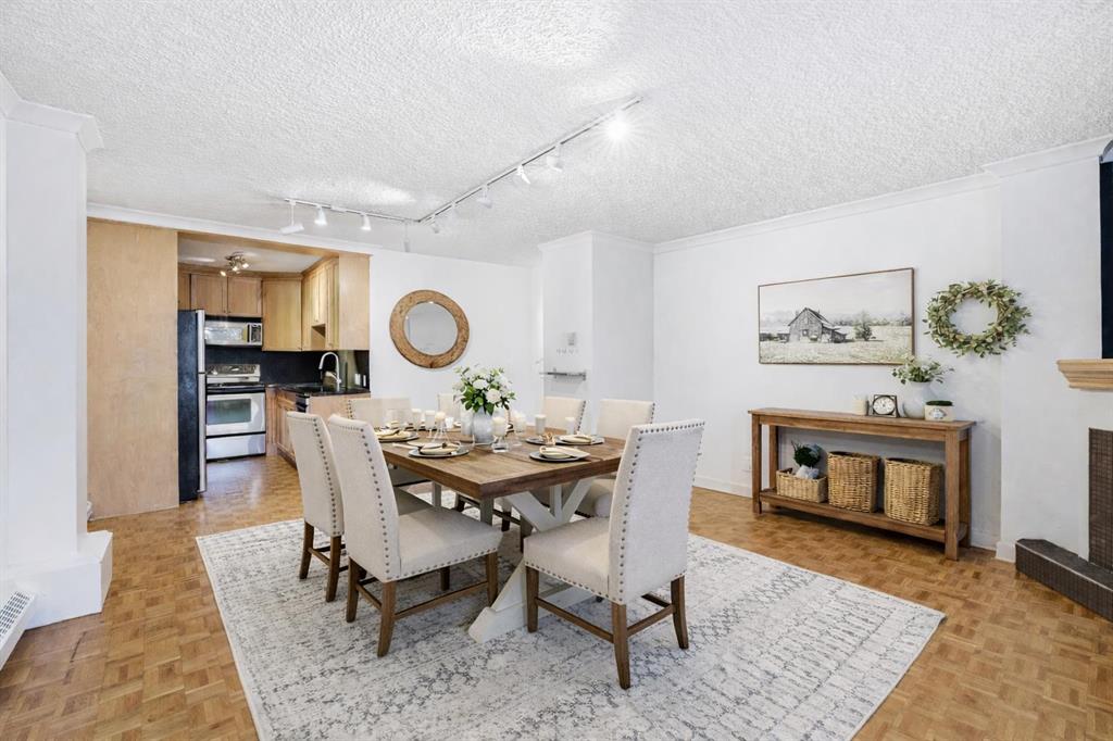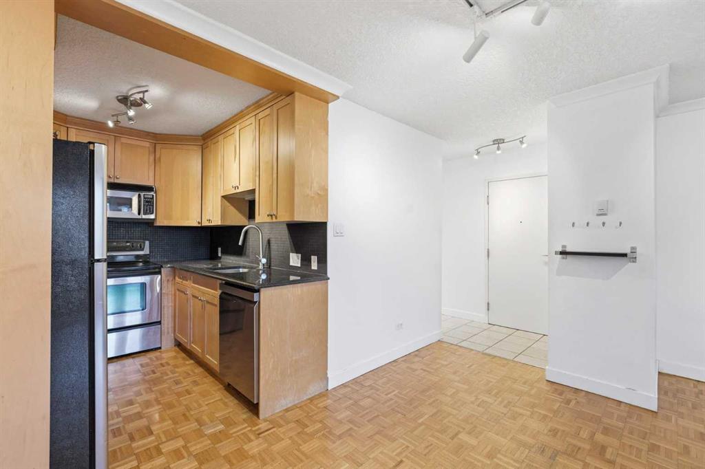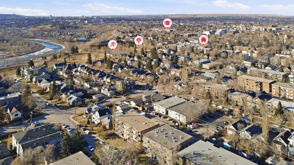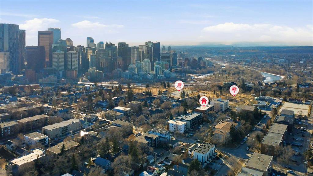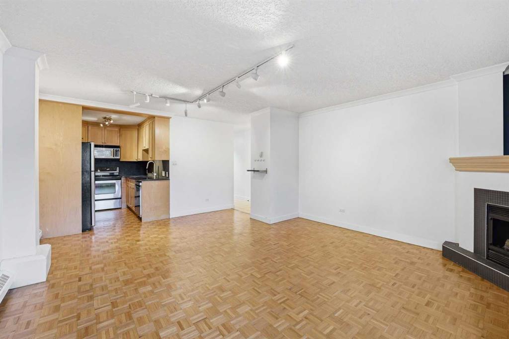 Welcome to your new 2-bedroom, 1-bath condo in a solid concrete building, ideally located half block from Crescent Height ridge in Crescent Heights. Inside, you’ll love the bright, open-concept layout featuring hardwood and ceramic tile flooring throughout. The maple kitchen showcases granite countertops, stainless steel appliances, and opens seamlessly to a spacious dining area and inviting living room complete with a cozy corner electric fireplace. Door that leads to your private balcony—perfect for relaxing or entertaining. The generous primary bedroom and 2nd bedroom, convenient in-suite combination laundry, and thoughtful finishes add to the home’s appeal. Enjoy a quiet setting just minutes from Calgary’s core, with easy walking access to Downtown Calgary. An excellent opportunity—ready to move in and enjoy!