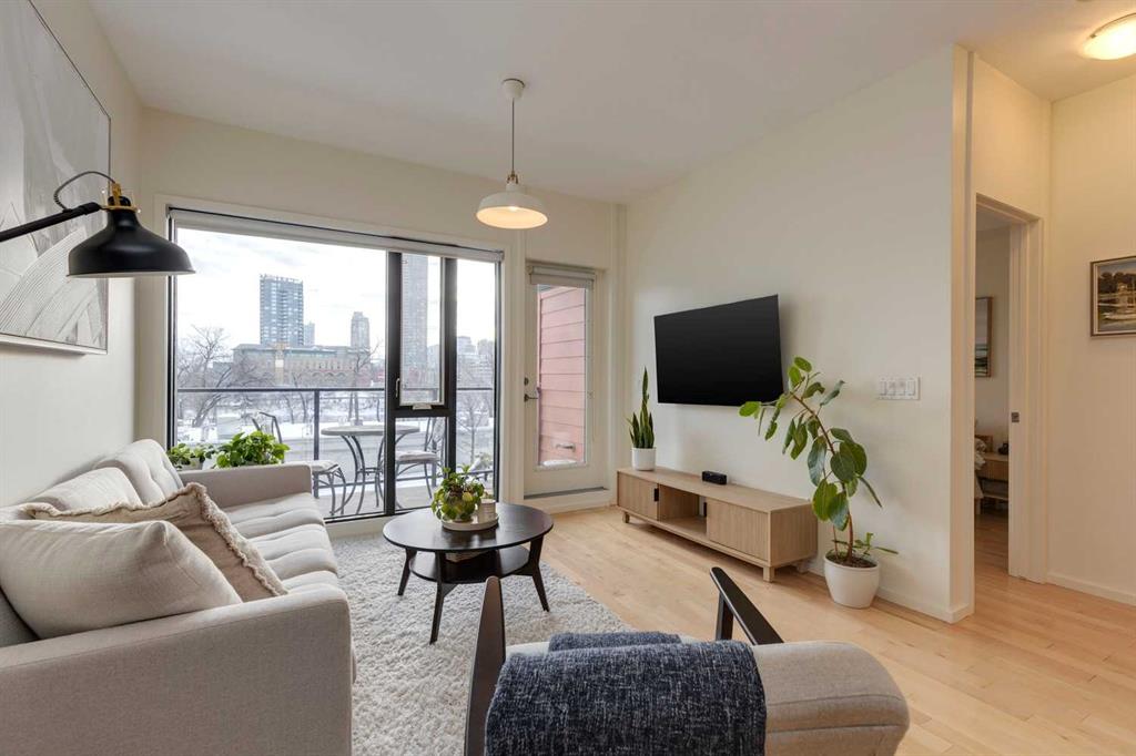 Amazing walkable location with unobstructed south-facing city and river views from this one-bedroom condo. Offering just under 650 sq ft, the bright open-concept floor plan is filled with natural light and designed for comfortable everyday living. The kitchen features quartz countertops, modern white cabinetry, and a large island ideal for both prep and entertaining. The well-appointed living area showcases stunning downtown and river views, providing an incredible backdrop day and night. The spacious bedroom also enjoys views of the river and city skyline. Step outside to your private south-facing balcony and take full advantage of Calgary’s summer months while enjoying even more breathtaking views. The unit includes heated titled underground parking, access to a common bike storage room, and ample underground visitor parking. Located in the desirable Vu building on a quiet dead-end street, traffic is minimal, creating a peaceful, destination-style setting. You’re just minutes from transit, Bridgeland, East Village, and downtown, offering the perfect balance of privacy and convenience. This home delivers an exceptional inner-city lifestyle with easy access to Calgary’s best amenities. A fantastic opportunity awaits.