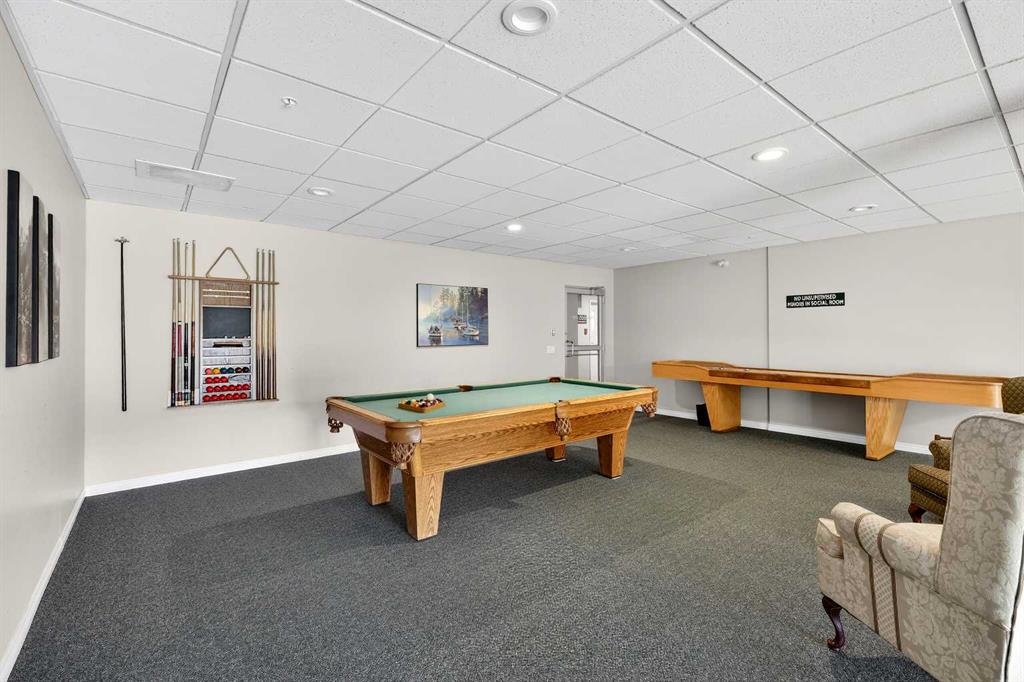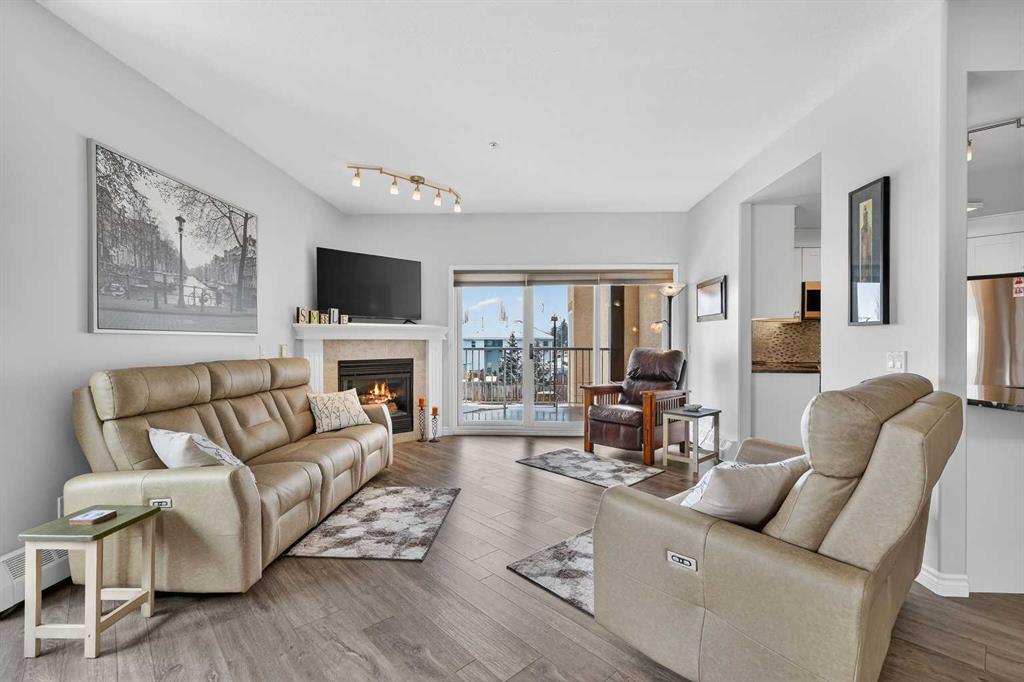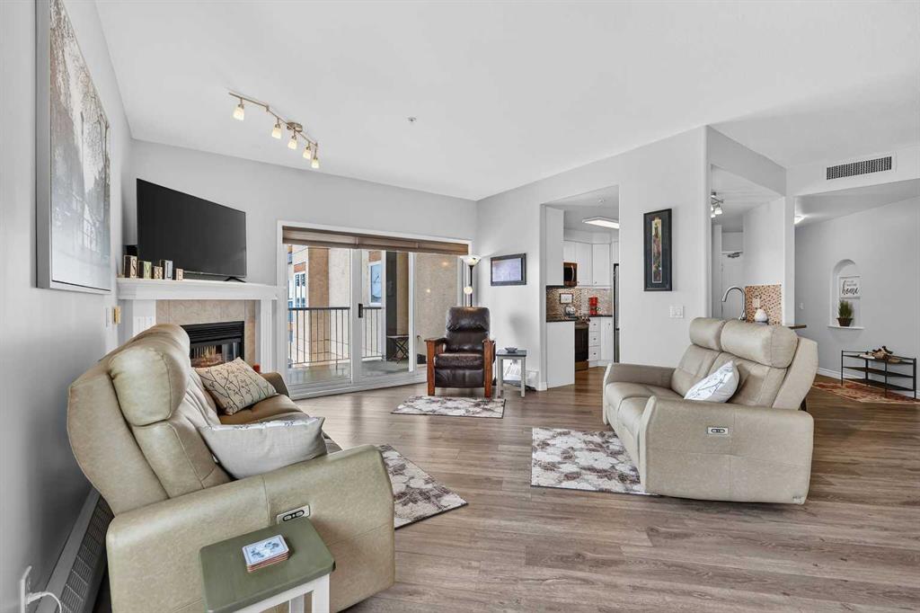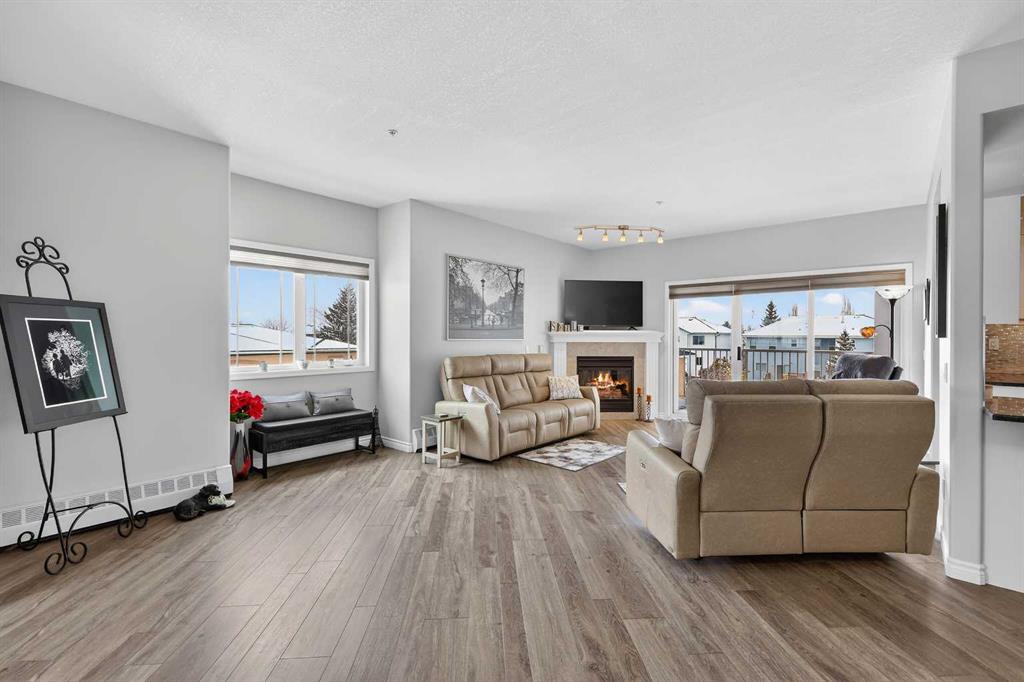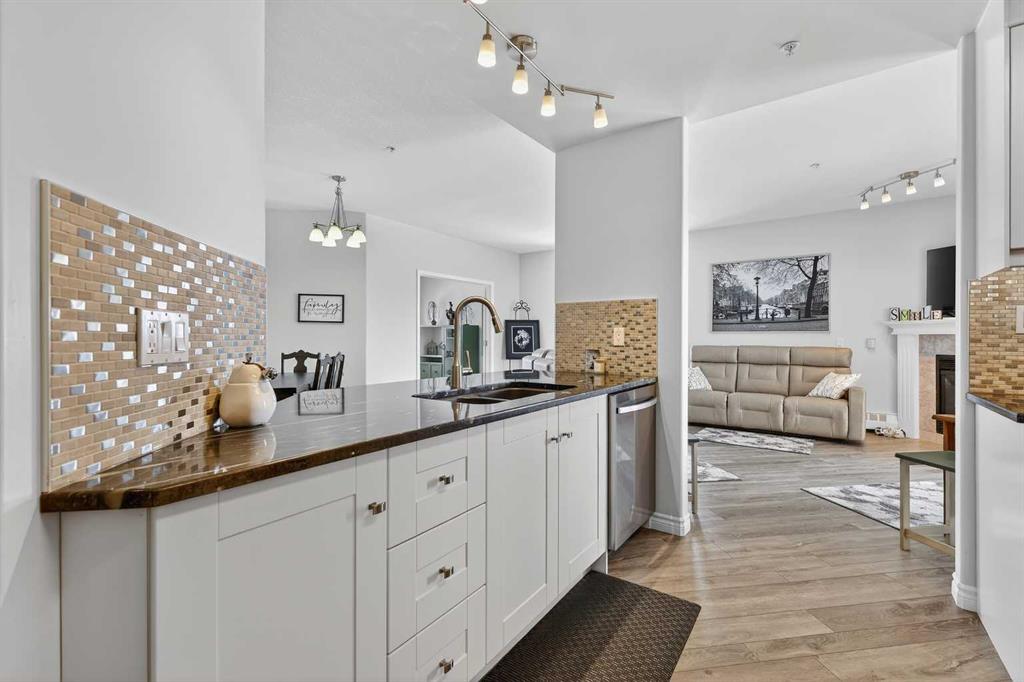 Welcome Home to The Courtyard — a Beautifully Renovated, Move-in Ready 55+ Adult Living Condo offering the perfect blend of comfort, style, and convenience. Situated on the second floor, this spacious unit features over 1,300 sq ft of thoughtfully designed living space, including 2 bedrooms, 2 full bathrooms, and a versatile den, all within a bright, open-concept layout. The sun filled interior showcases the elegant luxury vinyl plank flooring and a generous living room anchored by a cozy gas fireplace—ideal for both everyday living and entertaining. The kitchen is a true highlight, featuring stunning granite countertops, abundant cabinetry, a pull-out pantry, and custom soft-close drawers with built-in inserts, along with a raised breakfast bar and ample space for a full dining area. The primary bedroom offers a private retreat, complete with a walk-in closet, a 4-piece ensuite, and a charming sunroom—perfect for a reading nook, hobby space, or home fitness area. Additional features include air conditioning, in-suite laundry, a separate den, and a private deck to relax and unwind. This unit also includes a heated underground parking stall and a storage locker. Residents enjoy access to excellent building amenities, including a recreation room and library.