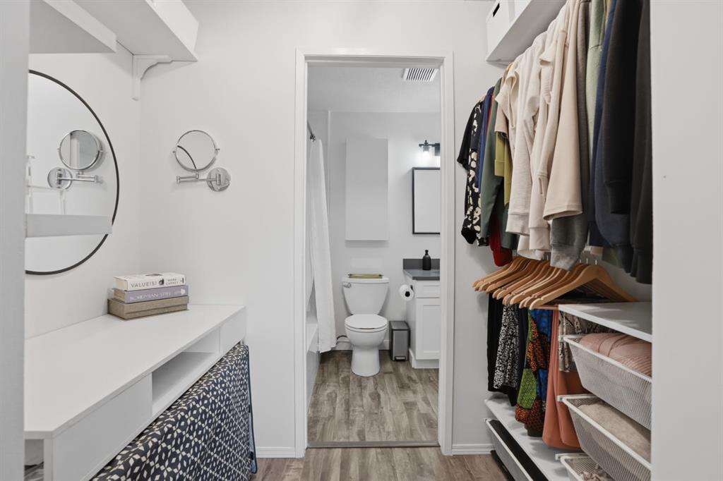 The large primary bedroom is a proper retreat. A walk-through closet with a barn door detail leads directly into the updated bathroom, giving the space a layout that just makes sense. The second bedroom is flexible enough to work as a guest room, a home office, or additional living space depending on what your life actually looks like right now.