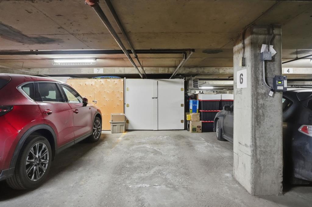 The practical details are all taken care of. In-suite laundry means no shared machines or laundry day logistics. Heated underground parking keeps your car out of the elements all winter. A dedicated storage locker gives you a real place to put the gear, the seasonal items, and everything else that does not belong in a condo closet. Bike storage in the building means the river pathway is even more accessible than it looks on a map. A large front entry closet rounds out the in-suite storage and keeps the entryway clean and functional.