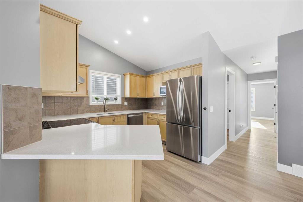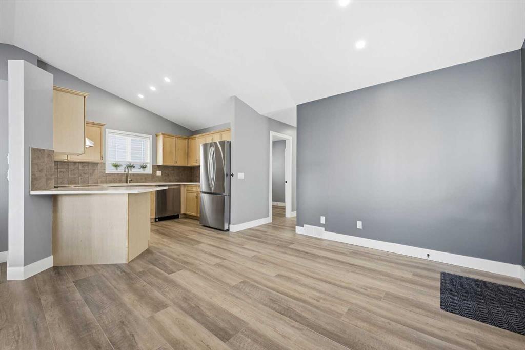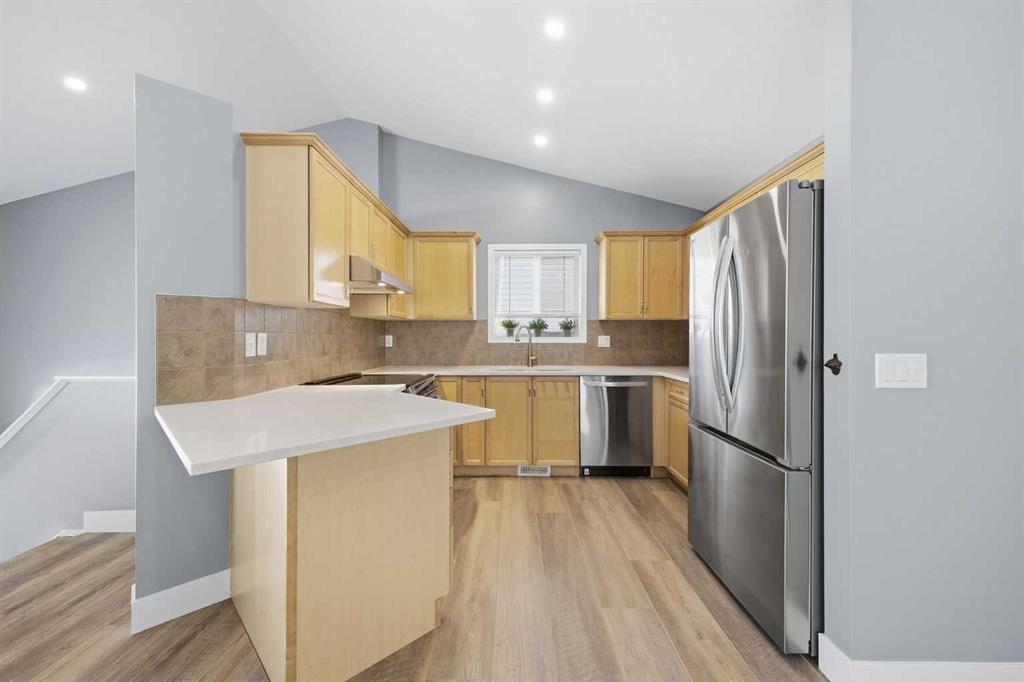 This charming 3 bedroom bi level in Airdrie’s desirable Morningside community has been beautifully updated and is truly move in ready. Luxury, durable vinyl plank flooring and fresh paint span the main level, setting the tone for the bright living room with vaulted ceiling & cozy gas fireplace, a spacious dining area perfect for hosting family and friends, and a refreshed kitchen featuring quartz countertops, abundant storage, and brand new stainless steel appliances. The primary bedroom offers a walk in closet and a nicely updated 4 piece ensuite complete with new tile, faucets, shower kit, and a built in medicine cabinet. Two additional bedrooms and an updated 4 piece main bath provide comfortable space for kids, guests, or a home office. Thoughtful upgrades continue throughout the home, including new blinds, custom closet organizers, solid interior doors, updated baseboards and casings, black hardware, new electrical outlets and switches, and modern lighting throughout—including recessed lighting. The walk up basement is an excellent blank canvas, ready for your future development plans to add even more living space. Outside, enjoy a sunny south facing backyard that has been newly landscaped with a stone patio, rock beds, trees, and fresh sod. A double detached garage adds convenience and easy parking year round. Ideally located close to shopping, schools, parks, and with quick access to QE II, this home offers comfort, style, and convenience. Immediate possession is available.