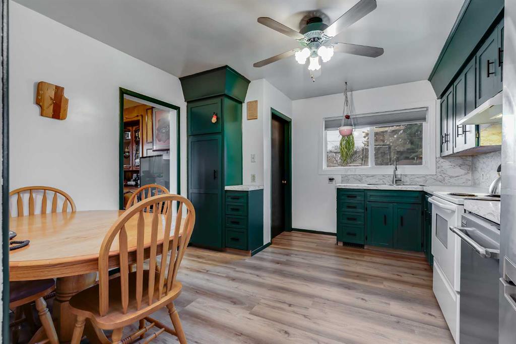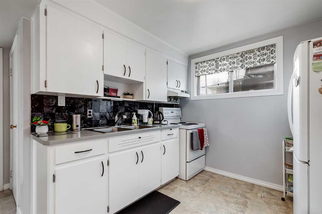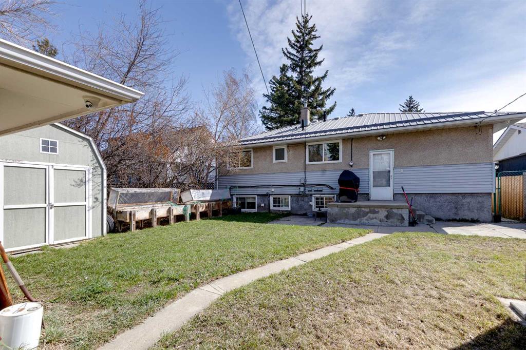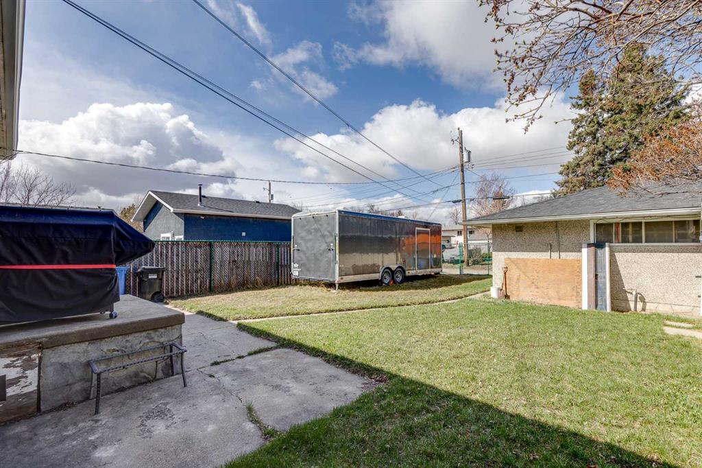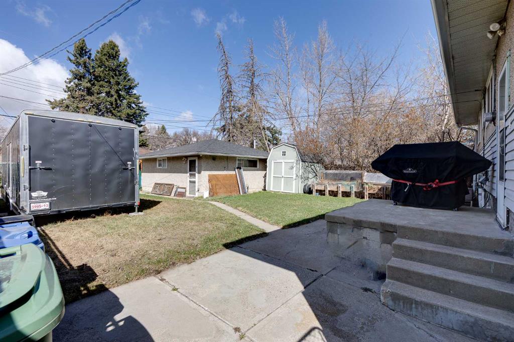 HUGE Lot | Legal Suite | Income Potential | Endless Possibilities. Welcome to this upgraded bungalow situated on a massive lot, offering outstanding affordability, redevelopment potential, and excellent income-generating opportunities. The bright and inviting main level features brand new vinyl plank flooring (2024), large sun-filled windows, and a spacious living area that flows seamlessly into the eat-in kitchen perfect for everyday living. Three well-sized bedrooms and a full bathroom w/ jetted tub, complete the upper level. Downstairs, you’ll find a charming and bright LEGAL basement suite with its own private front entrance. Finished with beautiful bamboo flooring, this very cute space includes a full kitchen, comfortable living area, bedroom, and a full bathroom. Shared laundry is conveniently located for easy access. With two separate furnaces, both levels enjoy independent climate control for added comfort and efficiency. Central A/C services the upper floor, the basement stays cool in the summer months without it. The basement is currently rented to a long-term tenant of over 20 years who would love to stay – offering immediate, stable income potential. Plenty of room in the basement for storage or to add another bedroom. Step outside to enjoy the expansive backyard – perfect for kids, pets, and entertaining. The low-maintenance, high-quality fencing provides both safety and peace of mind. An 8×10 storage shed adds extra functionality for tools and garden supplies. The oversized double garage (22×24) is insulated, heated, and equipped with 220V power ideal for a workshop or hobby space (radiant heater negotiable; workbenches excluded). The asphalt roof on the garage was done in 2019. There is also excellent RV parking and additional parking space for ultimate flexibility. Further upgrades include newer windows, central A/C, tankless hot water system, and dual furnaces serving both levels. This versatile property offers countless options live up, rent down, invest, or hold for future development. A rare opportunity with a large lot and built-in mortgage helper. Book your showing today!