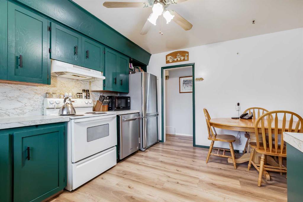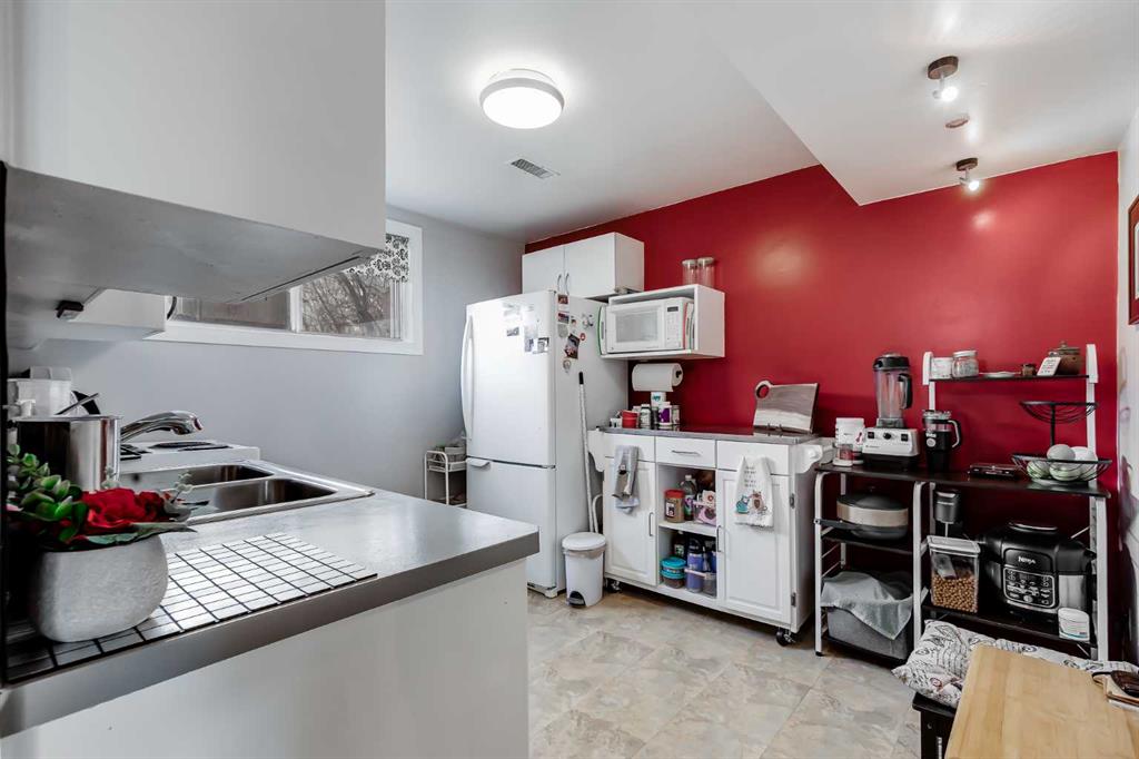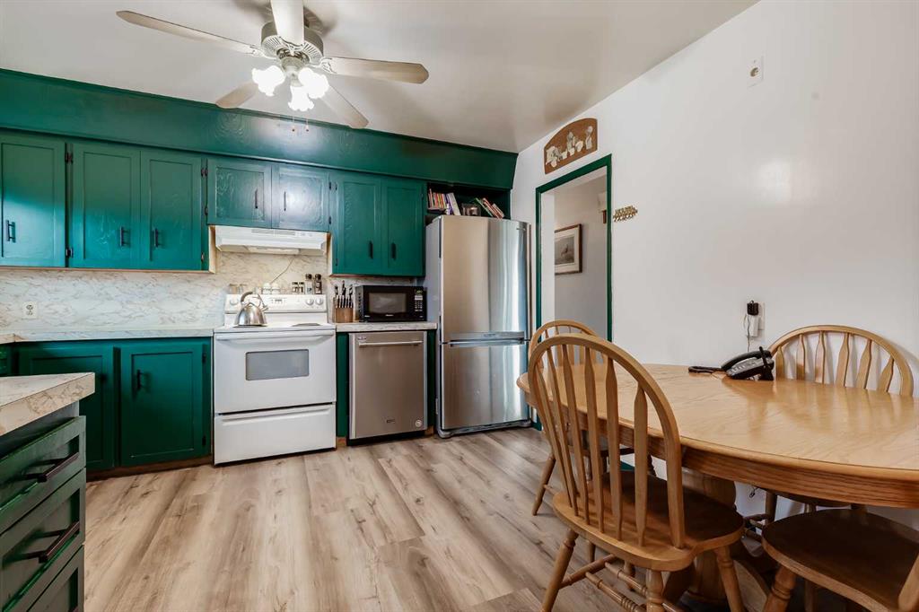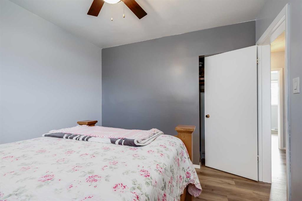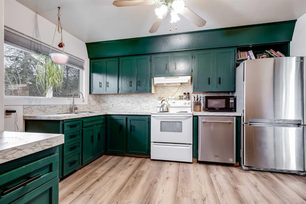 HUGE Lot | Legal Suite | Income Potential | Endless Possibilities. Welcome to this upgraded bungalow situated on a massive lot, offering outstanding affordability, redevelopment potential, and excellent income-generating opportunities. The bright and inviting main level features brand new vinyl plank flooring (2024), large sun-filled windows, and a spacious living area that flows seamlessly into the eat-in kitchen perfect for everyday living. Three well-sized bedrooms and a full bathroom w/ jetted tub, complete the upper level. Downstairs, you’ll find a charming and bright LEGAL basement suite with its own private front entrance. Finished with beautiful bamboo flooring, this very cute space includes a full kitchen, comfortable living area, bedroom, and a full bathroom. Shared laundry is conveniently located for easy access. With two separate furnaces, both levels enjoy independent climate control for added comfort and efficiency. Central A/C services the upper floor, the basement stays cool in the summer months without it. The basement is currently rented to a long-term tenant of over 20 years who would love to stay – offering immediate, stable income potential. Plenty of room in the basement for storage or to add another bedroom. Step outside to enjoy the expansive backyard – perfect for kids, pets, and entertaining. The low-maintenance, high-quality fencing provides both safety and peace of mind. An 8×10 storage shed adds extra functionality for tools and garden supplies. The oversized double garage (22×24) is insulated, heated, and equipped with 220V power ideal for a workshop or hobby space (radiant heater negotiable; workbenches excluded). The asphalt roof on the garage was done in 2019. There is also excellent RV parking and additional parking space for ultimate flexibility. Further upgrades include newer windows, central A/C, tankless hot water system, and dual furnaces serving both levels. This versatile property offers countless options live up, rent down, invest, or hold for future development. A rare opportunity with a large lot and built-in mortgage helper. Book your showing today!