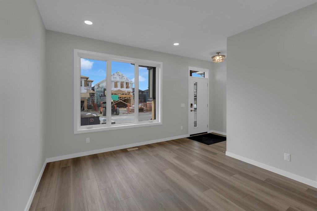 Move into your BRAND NEW home for Christmas! This gorgeous half duplex—the Wren by Excel Homes—is loaded w/upgrades, high end finishings & ready for quick possession. Perfectly situated in Airdries COBBLESTONE CREEK, residents can find sanctuary in Cobblestone’s network of parks, paths & recreational amenities – with direct access & pathway connections to amazing Chinook Winds Regional Park & across the street from Airdries new rec Centre – tennis, pickleball & basketball courts – so many options to say active & socialize! Nearby schools have your covered from K to 9. The WREN showcases a contemporary open-concept main floor, ideal for entertaining and everyday living. Poured concrete walk ways & front porch will provide for lasting curb appeal. The chef-inspired kitchen, located at the rear of the home, overlooks the backyard and provides gorgeous, neutral, ceiling height cabinetry, drawers, and a full pantry. Upstairs, a striking black metal railing leads to a cozy central bonus room with vaulted ceilings, separating two generous secondary bedrooms from the private primary suite, which features a full ensuite and a spacious walk-in closet. All bathrooms have stone countertops! The upper floor also includes a convenient laundry & and family bath. This home includes a SIDE ENTRANCE to the basement, offers 9′ ceilings, is drywalled and the electrical is also done. The utilities are nicely tucked at the rear of the home for easy development & more useable floor space. This home comes with an 18.8 x 22 CONCRETE parking pad, one tree & sod to front yard. There is also a gas line to the bbq at the rear. With over 35 years of experience, more than 15,000 homes built, and 75 awards for design and industry excellence, Excel Homes continues to deliver quality, innovation, and peace of mind—making the Wren a truly smart choice for your next move.