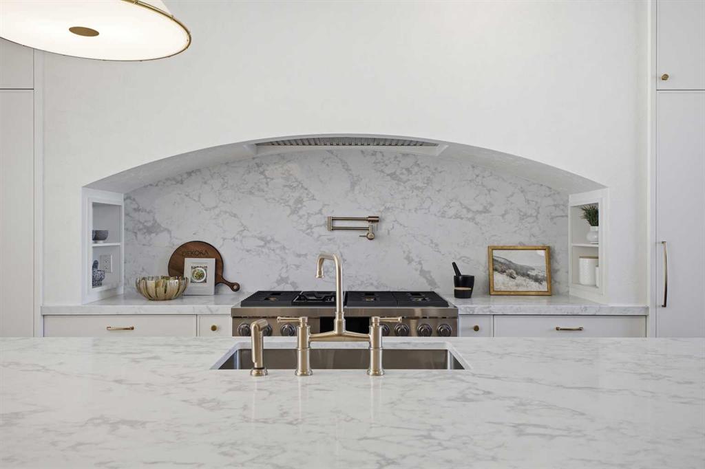 The exterior sets the tone: French transitional style with timeless mouldings, arched windows, and proportions that just feel right. Inside, it’s all soft curves, high ceilings, and French-inspired finishes that manage to be both romantic and livable.