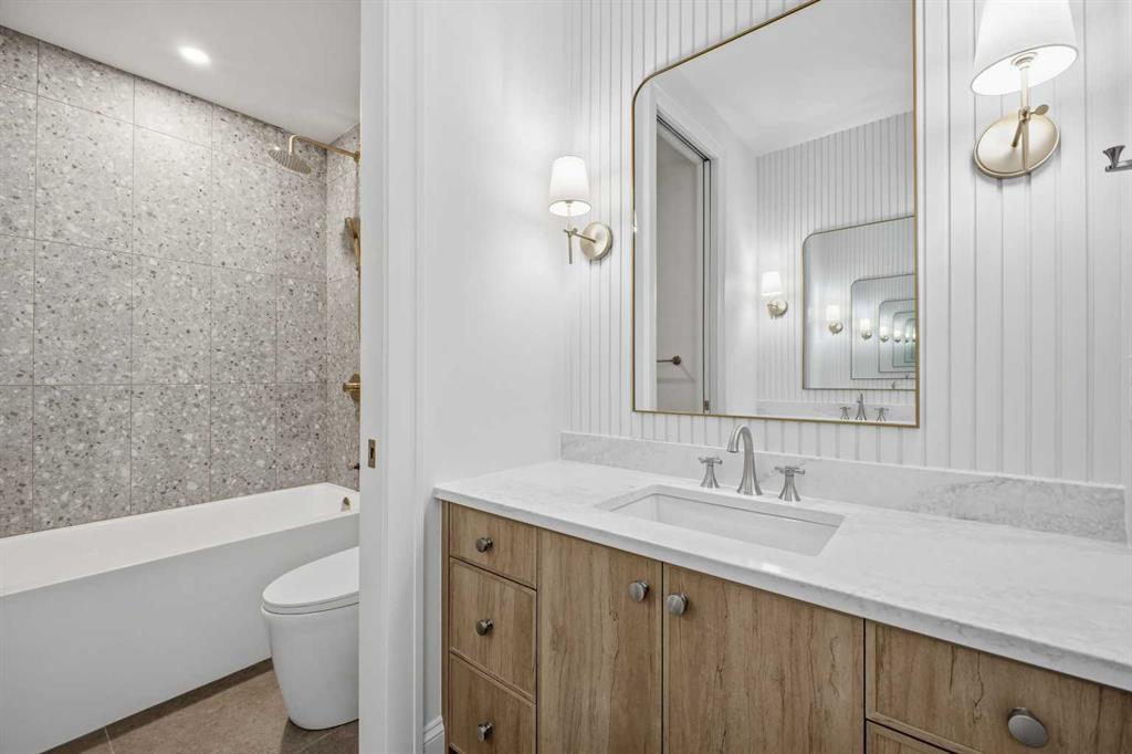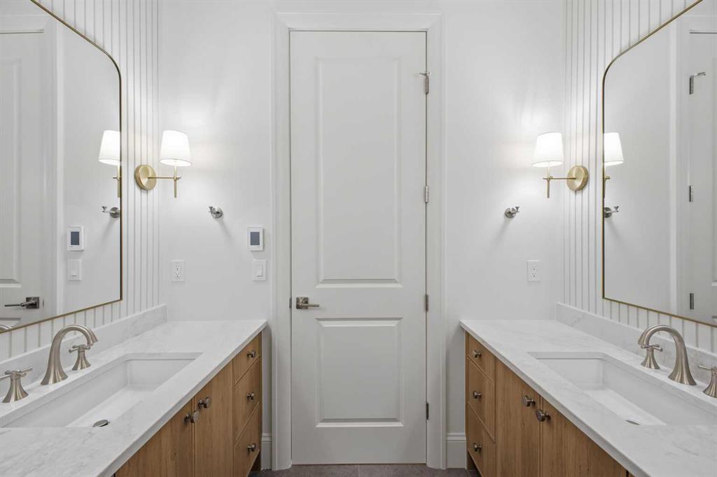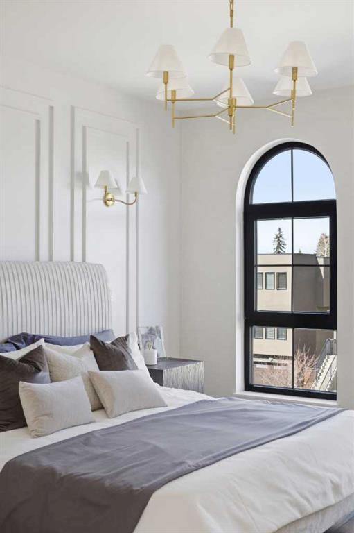 Upstairs, the primary suite is your private retreat. Wake up to soft light and city views, then step into a spa-like ensuite with dual vanities, arched mirror details, custom plaster finishes, in-floor heat, and tilework that was thoughtfully designed. The shower is a showstopper with multi-integrated tiles and quartz jamb, straight out of a design magazine. Sit on the bench and enjoy the steam shower. The secondary bedrooms are generously sized with walk-in closets, and the shared bathroom with in-floor heat blends French-inspired design with everyday practicality, dual vanities.