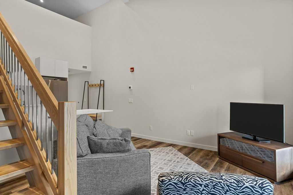 Welcome to this stylish and highly functional loft-style unit located in the heart of Canmore. Thoughtfully designed and fully furnished, this contemporary retreat blends comfort, convenience, and mountain-town charm. Step inside to an open, airy layout featuring sleek stainless-steel appliances and an abundance of cabinet space to keep everything organized. The unit also includes a European-style in-suite washer/dryer, adding exceptional everyday convenience. A covered private deck extends the living space outdoors, perfect for relaxing and taking in the fresh mountain air year-round. This property offers outstanding amenities, including secured bike storage, individual storage lockers, and the added benefit of industrial-grade laundry machines onsite for larger loads. Perfectly situated, the location is a standout: walking distance to downtown Canmore and just moments from shopping, transit, nature trails, the golf course, and the area’s endless outdoor recreation.