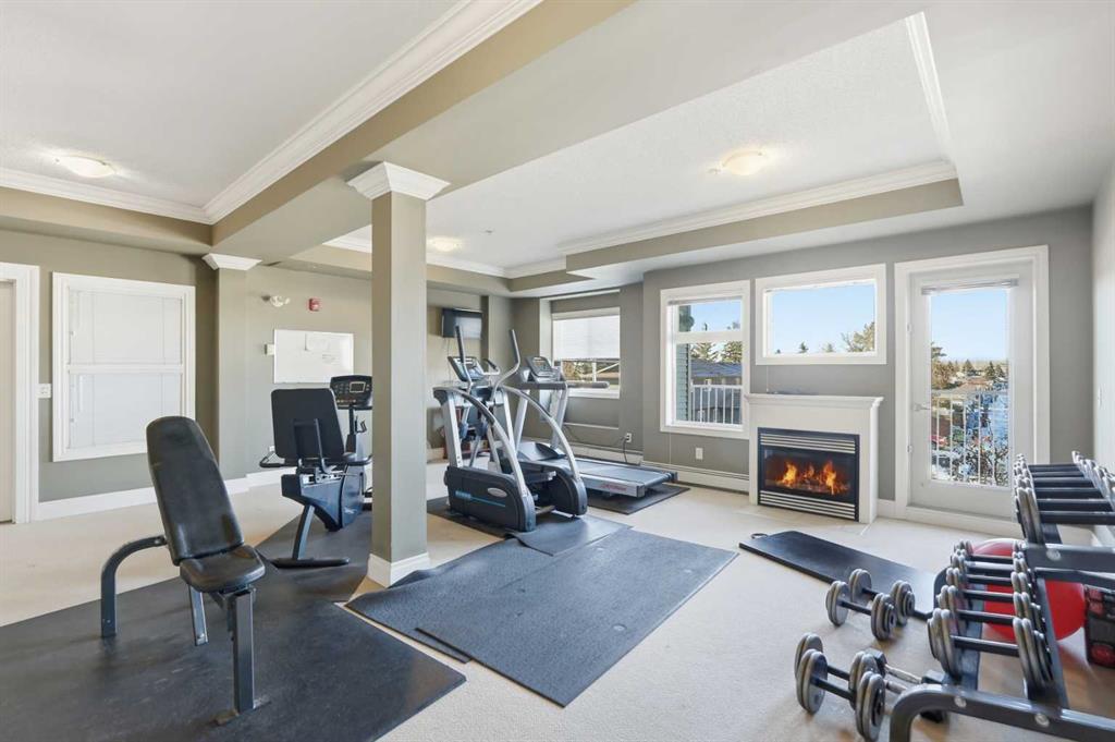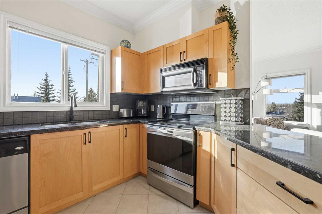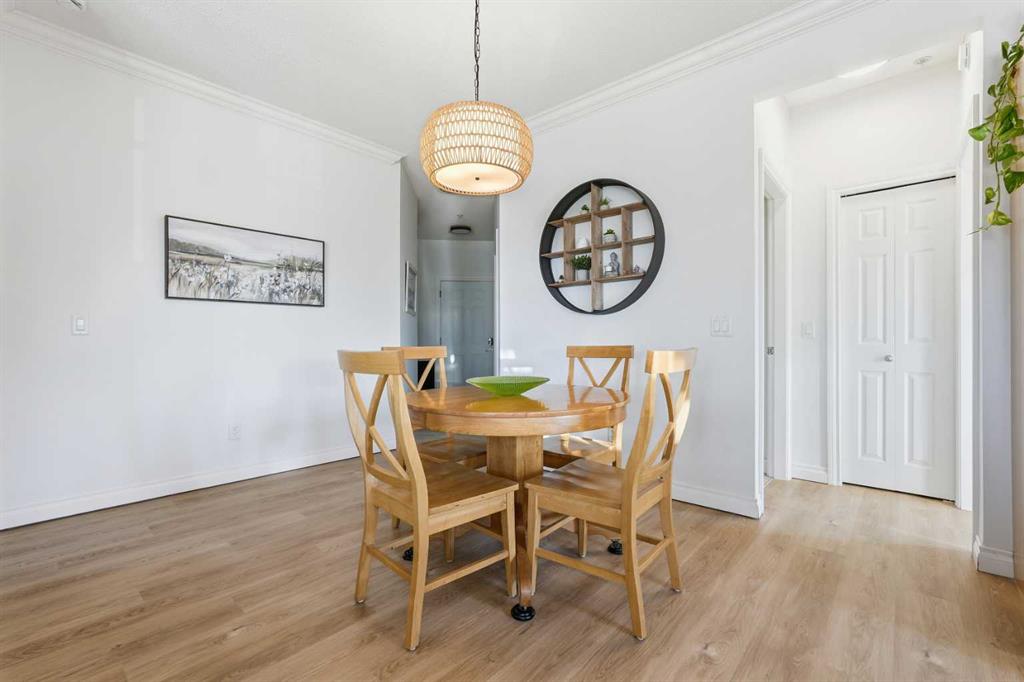 Soak in stunning mountain views from this bright and beautifully maintained 2 bedroom, 2 bathroom corner unit with sought-after southwest exposure. Bathed in natural light throughout the day, this home offers an airy, open feel enhanced by large windows, 9-foot ceilings, and a smart open-concept layout. The spacious kitchen is both stylish and functional, featuring rich granite countertops, a tiled backsplash, stainless steel appliances, ample cabinetry, and peninsula seating that’s perfect for casual meals or entertaining. The kitchen flows seamlessly into the living and dining areas, where a cozy gas fireplace adds warmth and charm, making this space equally inviting for relaxing evenings or hosting friends. Freshly painted and move-in ready, the unit showcases brand new luxury vinyl plank flooring, updated fixtures, crown moulding, and window blinds throughout. Comfort is also top of mind with in-floor heating. The primary suite offers generous space and excellent natural light, while the second bedroom is perfect for guests, family, or additional workspace. Both bathrooms feature tiled finishes, and the separate in-suite laundry room provides extra storage and everyday convenience. Step outside to the covered balcony, complete with a gas BBQ line, where you can unwind and enjoy the spectacular mountain backdrop year-round. This home also includes heated underground parking, bike storage, and a private storage locker conveniently located near the elevator and your parking stall — an everyday luxury you’ll appreciate. The well-managed building offers added lifestyle perks including a private exercise room and a party room with kitchen available for small rentals. Ideally located with quick access to Anderson Road and 14th Street, you’re just minutes from Glenmore Reservoir, Fish Creek Provincial Park, Rockyview Hospital, Southcentre Mall, Glenmore Landing, and nearby community amenities including schools, playgrounds, and public transit.