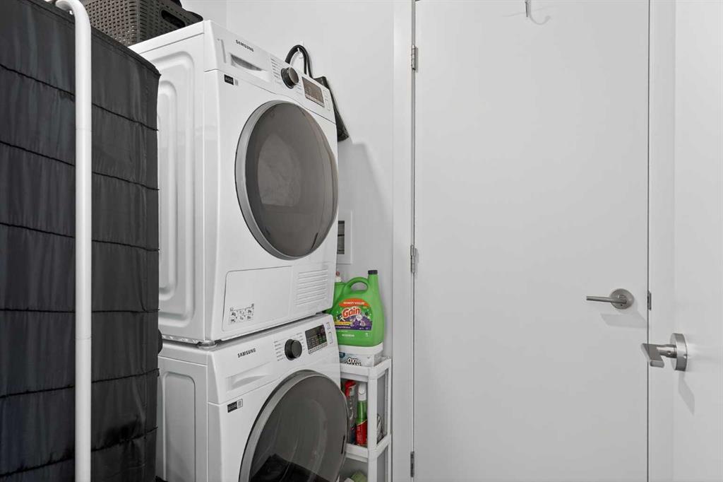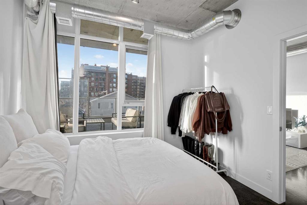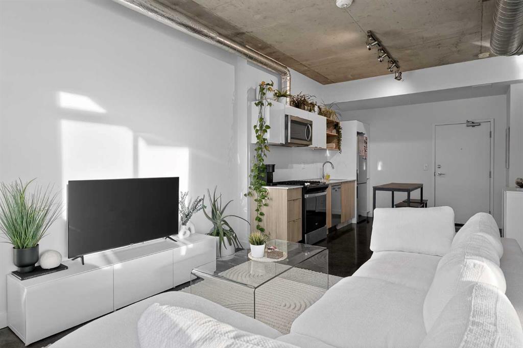 Welcome to NUDE by Battistella, a building designed for those who appreciate authenticity and architectural grit. This isn’t your cookie-cutter condo; with its open-concept industrial ceilings, exposed ductwork, and sleek polished concrete floors, this one-bedroom unit offers a New York loft aesthetic right in the heart of Calgary’s Beltline. Step inside to an airy, sun-drenched sanctuary that is a rare find. Located on the second floor, this unit boasts an oversized, south-facing balcony that acts as your own private urban terrace. Whether you are hosting a summer BBQ or soaking up the afternoon sun, this massive outdoor extension of the living space is a true game-changer. The minimalist kitchen features stainless steel appliances, a gas cooktop, and beautiful light wood cabinetry. Practicality meets style with in-suite laundry, central air conditioning, and floor-to-ceiling windows. This unit comes complete with its own underground titled parking stall and an assigned storage locker for all your extra gear. NUDE is a community designed for the modern professional, offering a penthouse resident lounge and an expansive rooftop patio with 360-degree city views. Guest logistics are a breeze with underground visitor parking stalls—a rare luxury for downtown living. This is a pet-friendly building where both dogs and cats are welcome with registration and board approval, and it even features a convenient dog wash station. For the urban commuter, there is secure bicycle storage and a dedicated maintenance workshop. Boasting a near-perfect Walk Score, you are just blocks from the vibrant shops and restaurants of 17th Ave SW. Experience the perfect blend of raw industrial design and premium urban convenience in the ultimate Beltline statement piece.
