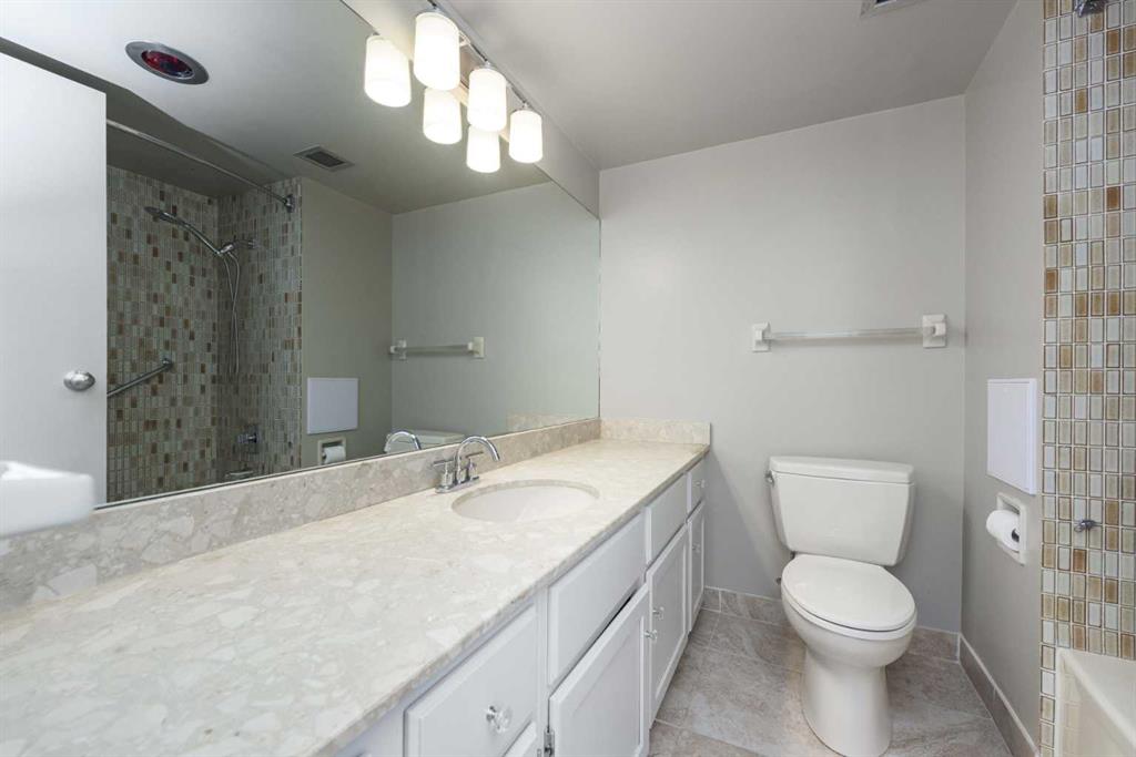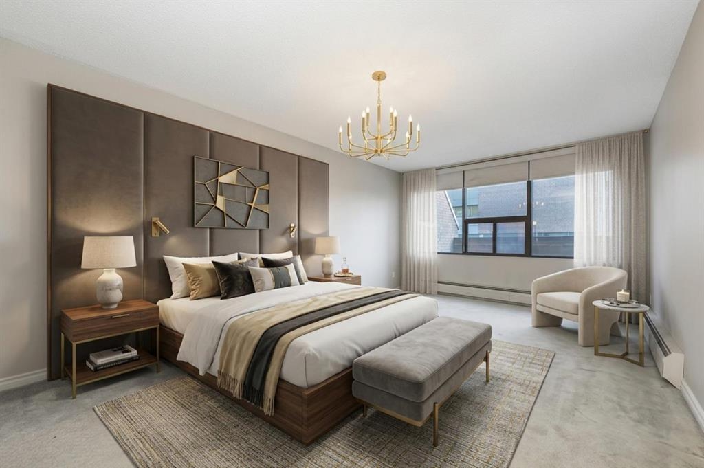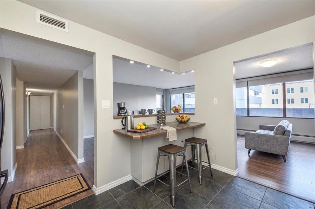 Spacious 2 bedroom, 1.5 bath unit in Mission’s prestigious Roxboro House! This well maintained suite has a large, private feeling balcony which spans the width of the entire apartment. It has a view of the Calgary Tower plus an open, bright layout. Kitchen includes a desk/eating bar, a newer stainless steel oven, and recently painted cabinets. Ample closet space in the generous primary bedroom. Use the second bedroom as a private office/den or guest quarters. Features in-suite storage, plus an assigned storage locker (#63 in the basement) so you’ll have room for everything. Comes with a parking stall in the heated parkade (#80 – which is on the same level as the unit for convenient access), plus all the building’s luxury facilities: huge, beautifully landscaped 4th floor sundeck, pool, hot tub, sauna, party room, gym, games room, large hobby and woodshop room, main floor 2 bedroom guest suite with kitchen available to be booked for visiting friends and family (rate ranges from $100 to $150/night), visitor parking, 24-hour security staff, and bike storage! Utilities, including electricity, are part of the condo fee (except cable/phone). Roxboro House is currently undergoing hallway modernization, bringing an elegant and stylish new look to the building. Second floor hallway reno is underway so check out another finished hallway to see how great it’ll look when finished. This locale is perfect for walking or biking as you’re conveniently near the Elbow River pathway, groceries, and amenities in the heart of Mission and 4th Street.