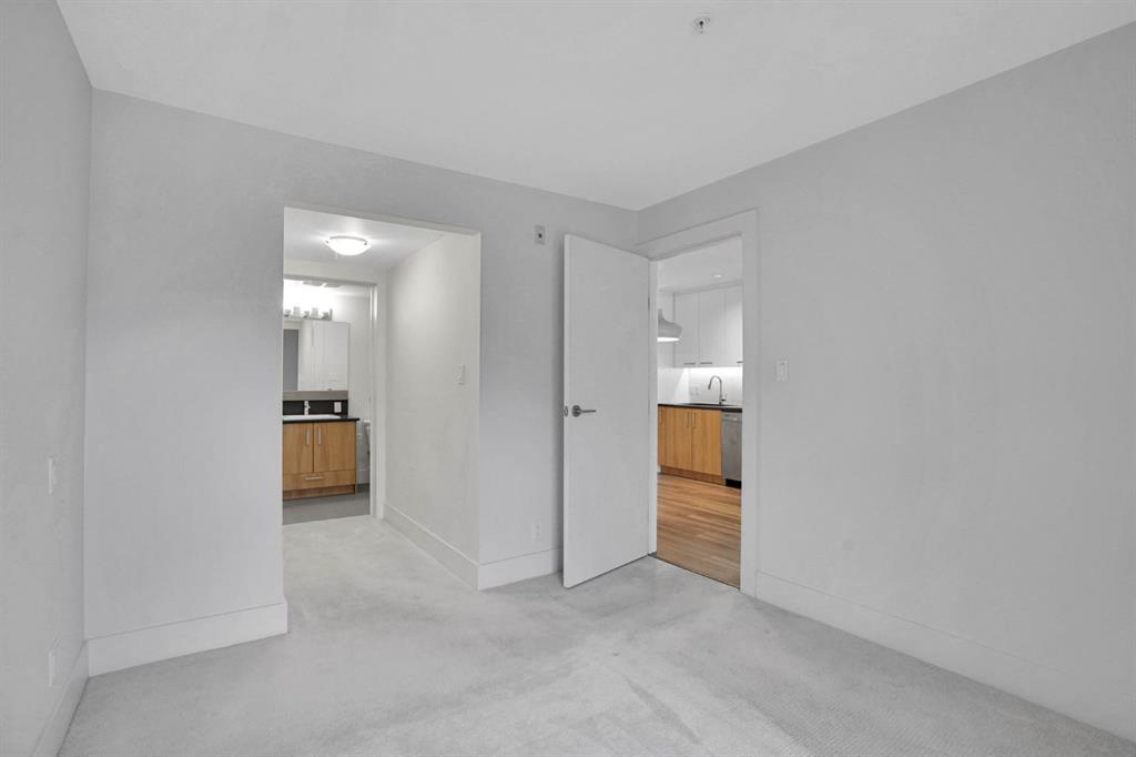 Enjoy outdoor living on the spacious balcony, perfect for relaxing or entertaining while soaking in the city atmosphere. Additional features include a 4-piece main bathroom, in-suite laundry, heated underground titled parking, an assigned storage locker, bike storage, and access to a fitness centre and beautifully designed communal courtyard.