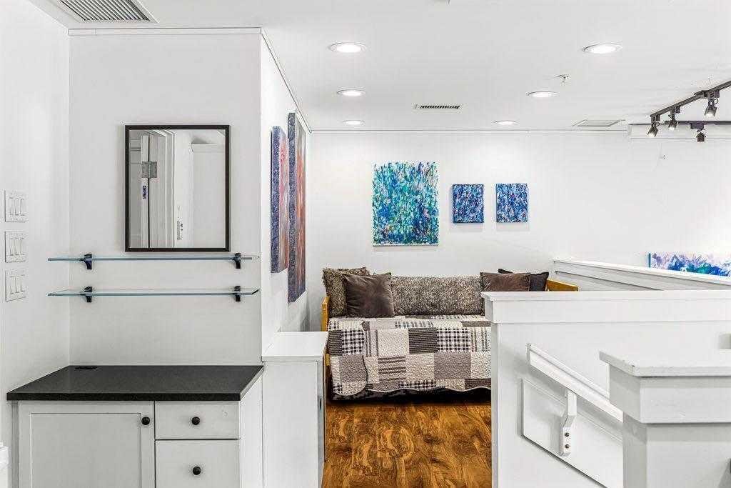 Ultimate Live / Work opportunity in the heart of Spring Creek, now fully transformed with over $100K in high end renovations. This beautifully reimagined two level studio offers exceptional flexibility for a home office, retail space, or creative studio below, with a fully upgraded residential retreat above. The 2 bedroom upper level has been completely renovated with a brand new kitchen featuring sleek cabinetry and quartz countertops, alongside fully redone bathrooms, new flooring, and striking exposed beam ceilings that add warmth and character. Natural light fills the space with views toward the Rundle Range and Policeman’s Creek, while the private deck offers a quiet place to unwind. The lower level workspace provides excellent exposure and versatility, ideal for a variety of business uses or a dedicated work from home setup. Complete with 2 titled underground parking stalls, 2 storage lockers, and a prime location just steps to Main Street, all within the sought after Moraine Ridge 40+ building, surrounded by boutique shops, cafes, galleries, and fitness studios, this is a rare opportunity to own a fully renovated live work property in one of Canmore’s most desirable communities.