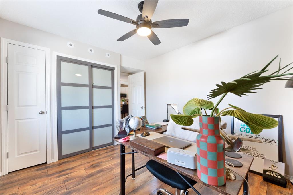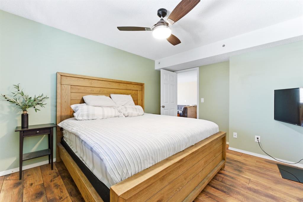 Recent updates include contemporary wide-plank laminate flooring, new closet doors, updated electrical outlets, ceiling fans, and a Honeywell smart home system you can control right from your phone. Step outside to the oversized balcony — a quiet and private spot to start your day or unwind in the evening. The building is well managed with reasonable condo fees, heated underground parking, and additional storage. All of this just minutes from Market Mall, the University of Calgary, local shops, restaurants, and quick access west to the mountains.