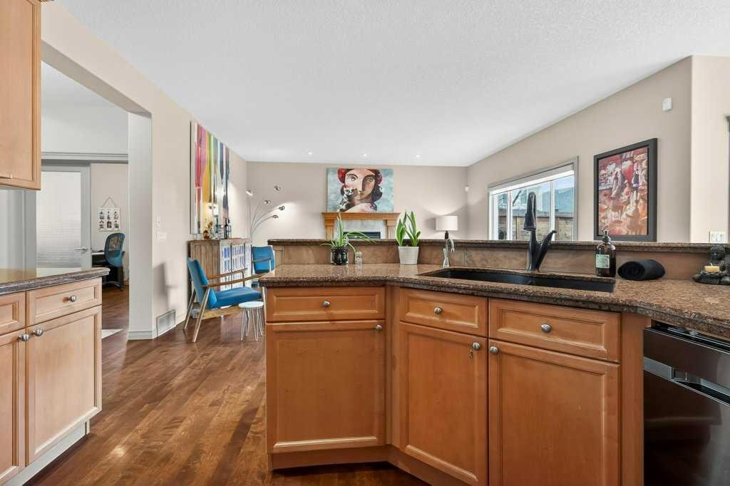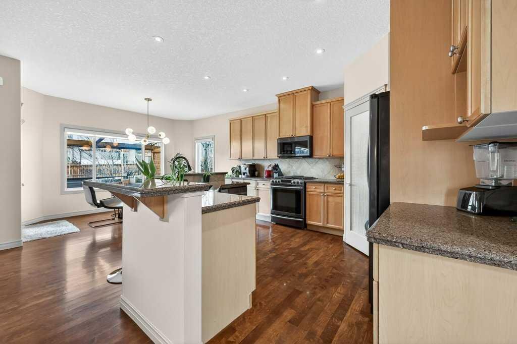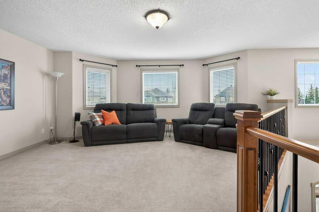 Welcome to this exceptional residence in the highly sought-after lake community of Crystal Green, offering an outstanding blend of comfort, functionality, and lifestyle. Perfectly positioned across from Crystal Ridge Golf Club and with year-round Lake Access, this home presents a rare opportunity to enjoy both scenic surroundings and resort-style amenities. From the moment you step inside, you are greeted by a bright and spacious entryway that sets the tone for the thoughtfully designed layout. The open-concept main floor has 9′ ceilings and is both elegant and practical, featuring a private den with glass French doors, ideal for a home office, study, or quiet retreat. The heart of the home is the beautifully appointed kitchen, complete with a large central granite island, modern Samsung appliances, an instant hot tap at the sink, tile backsplash and a highly functional walk-through pantry that seamlessly connects to the mudroom—perfect for busy households and effortless entertaining. The inviting living room is anchored by a cozy gas fireplace and framed by large windows that flood the space with natural light while offering views of the backyard. The adjacent dining area creates the perfect setting for hosting family and friends, with easy access to the outdoor living space. Upstairs, you’ll find a generous bonus room, ideal for movie nights, a play area, or a secondary lounge space. The primary suite serves as a relaxing retreat, featuring a walk-in closet and a luxurious 5-piece ensuite with a jetted soaker tub, dual vanities, and ample space to unwind. Two additional well-sized kids’ bedrooms are a good size and close to the 4pc bathroom. Step outside to your private west-facing backyard oasis, where you can enjoy long summer evenings on the expansive deck. The deck is thoughtfully designed with a gas line for your BBQ, privacy walls, privacy shades, a pergola, and an outdoor fan for added comfort. This outdoor space is perfect for relaxing, entertaining, or simply taking in the peaceful surroundings. The unfinished basement offers endless potential, with 3 oversized windows allowing you to customize the space to suit your lifestyle—whether that be a home gym, recreation room, or additional living quarters. The home has been well-maintained and upgraded with A/C, central vac, and new hot water tank. Located in one of the area’s most desirable communities, residents of Crystal Green enjoy exclusive lake privileges, walking paths, parks, and proximity to golf, schools, and amenities. Don’t miss this incredible opportunity to own in Crystal Green. Book your showing and come on Buy!