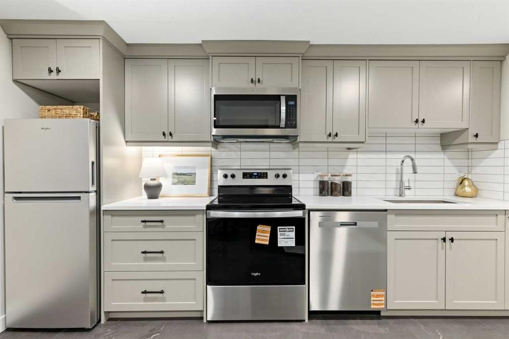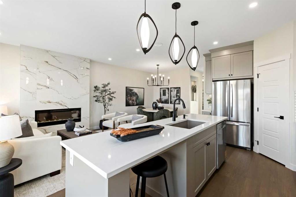 Home Features: Open-concept main floor with a spacious kitchen, large island, walk-in pantry, and main floor flex room. Upper floor with 3 generous bedrooms, a bonus room with a vaulted ceiling, and an open-to-below foyer. Legal basement suite with 2 bedrooms, full kitchen, laundry, and great room. Concrete patio in the backyard and a double attached garage with a full driveway. Air conditioning, washer & dryer, and a complete kitchen appliance package included.