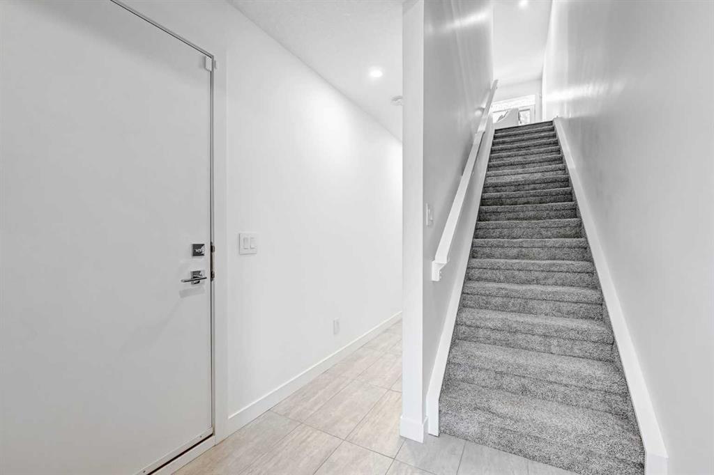 The main level features a private bedroom with a 3-piece ensuite, ideal for guests or a home office along with convenient access to the attached garage. Upstairs, the bright and inviting second level is designed for everyday living and entertaining, showcasing a cozy living room with an electric fireplace and direct access to a park facing deck complete with a gas line for your BBQ. The stunning kitchen is the centerpiece of the home, featuring high-end stainless steel appliances, a huge quartz island with seating for six, generous cabinetry, and a spacious dining area, complemented by a convenient 2-piece bathroom.