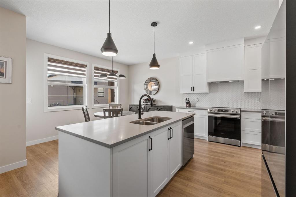 This is the one. A fully finished two-storey home, steps from major shopping and set in one of Airdrie’s most desirable communities. Designed with real family living in mind, this residence offers over 2,300 sq ft of developed space, a bright south-facing backyard, double detached garage, and a fully finished basement—plenty of room to live, host, and grow.