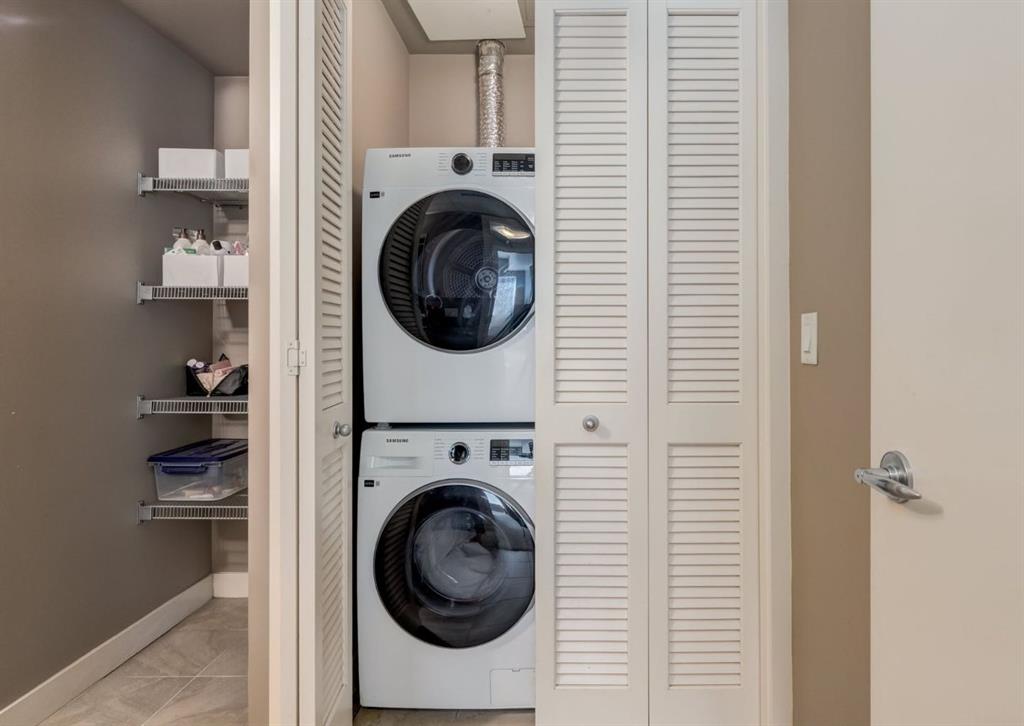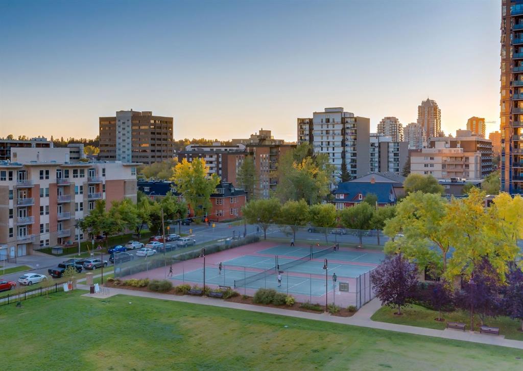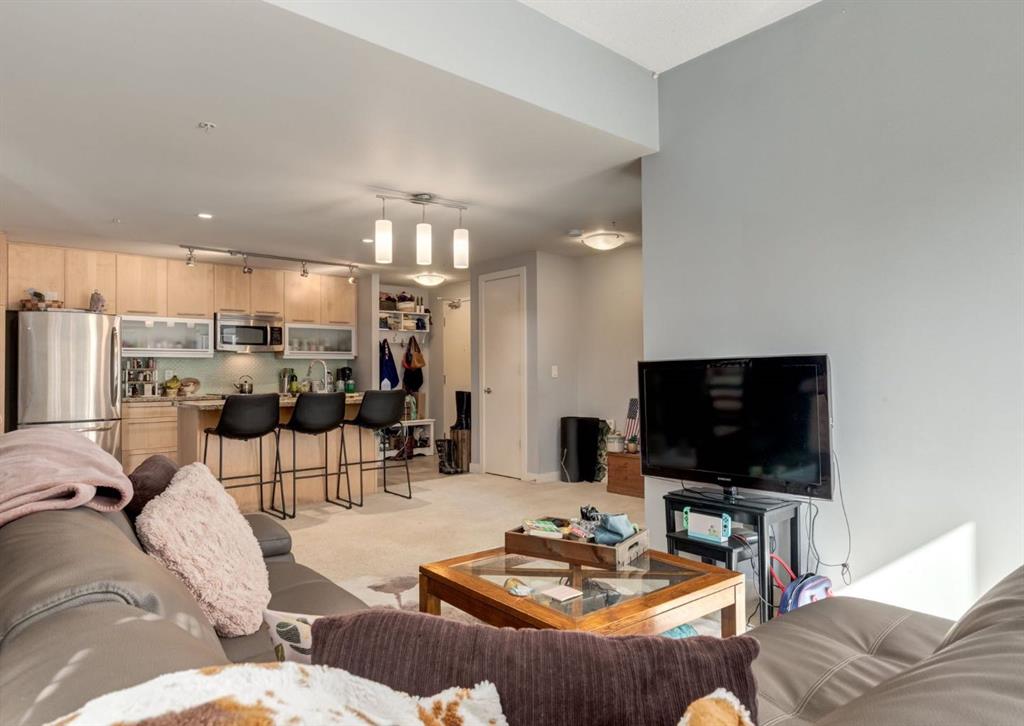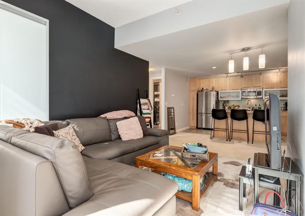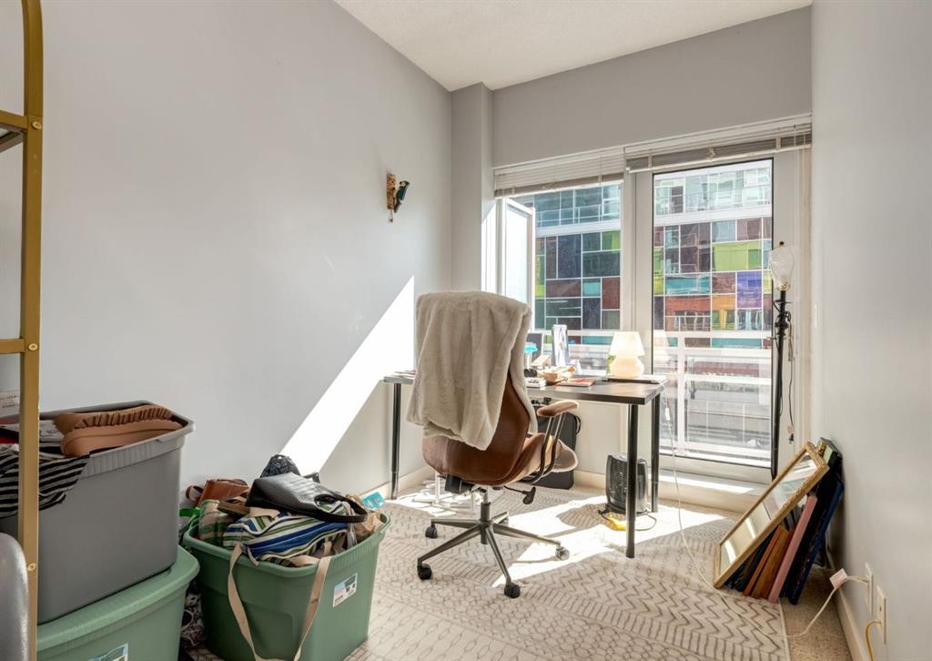 Stylish Urban Condo in Union Square where contemporary design meets an unbeatable location in this executive CONCRETE building. This exceptional one-bedroom plus den condo offers over 830 square feet of well-planned living space in a unique and functional layout. The open-concept layout showcases an inviting kitchen, dining area, and great room that flow seamlessly together, while the spacious primary bedroom with walk-in closet and versatile den—ideal as a home office or guest room—offer comfort and flexibility. Modern finishes include granite countertops, maple cabinetry, and stainless steel appliances. Additional conveniences include air conditioning, in-suite laundry (machines replaced in 2024), a balcony that expands your living space, a separate storage unit down the hall, and OVERSIZED underground TITLED parking steps from the elevator. The monthly condo fees include gas, water, insurance, window cleaning, heat, bike storage, and more. Located in the heart of Calgary’s Beltline, you’re just steps from First Street Market, cafes, restaurants, and shops, with Stampede Park, Haultain Park, and the Saddledome all within easy walking distance. Commuting is effortless—walk to downtown, gyms, hop on the LRT, or explore nearby pathways and green spaces. Floor plans and a 3D tour are readily available, providing a glimpse into this chic condo!