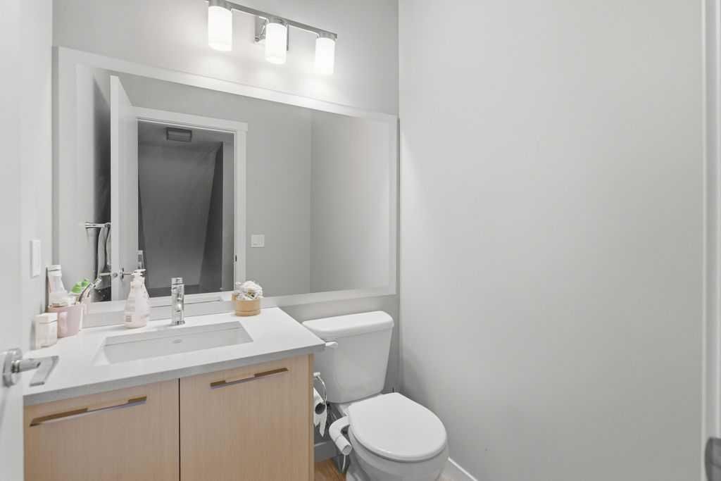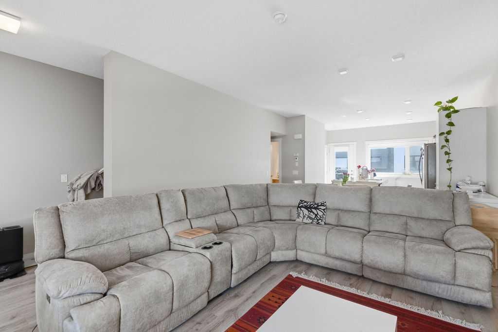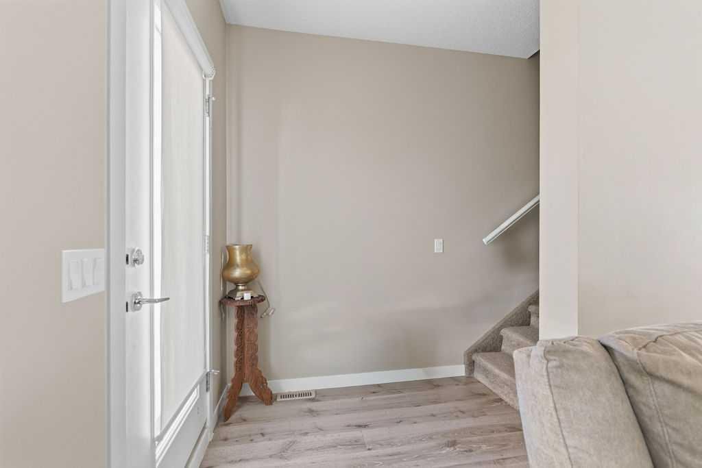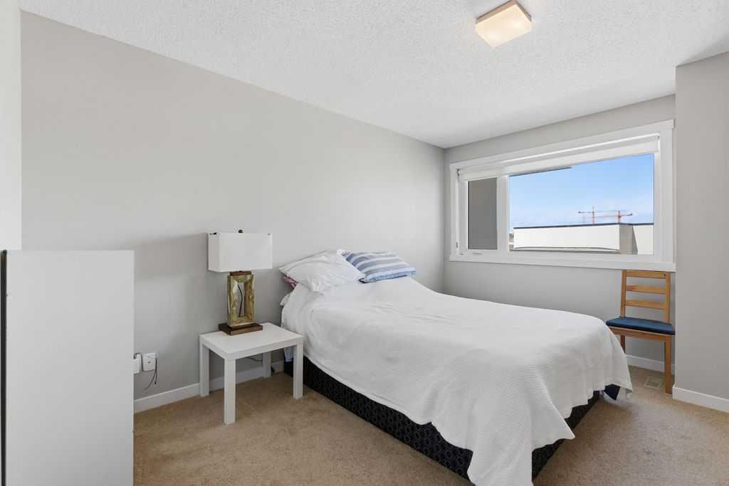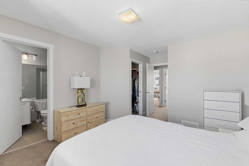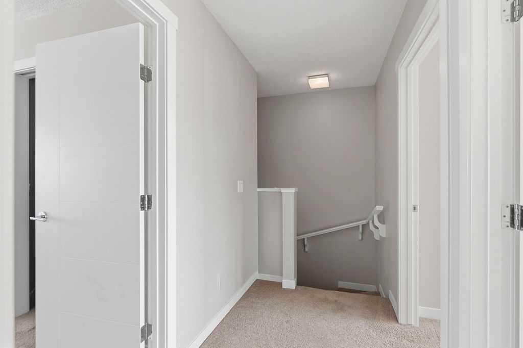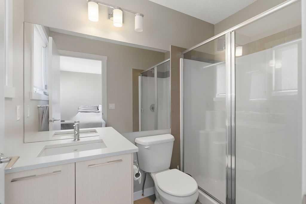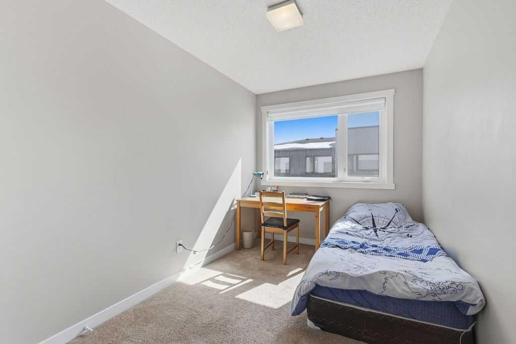 Welcome to this stunning and beautifully appointed townhome in the highly desirable Diseno community of Sherwood. Offering 1,576 sq. ft. of thoughtfully designed living space, this home seamlessly blends modern style, comfort, and functionality—ideal for families, professionals, or those seeking low-maintenance living without compromise. The main level welcomes you with a bright and spacious flex room, perfectly suited for a home office, gym, or guest space. Large windows fill the area with natural light while showcasing peaceful views of the surrounding greenspace, creating an inviting and versatile environment. This level also provides convenient access to the double attached garage, making everyday living effortless. Upstairs, the second level reveals an impressive open-concept layout designed for both relaxing and entertaining. The spacious living room is anchored by natural sunlight, creating a warm and welcoming atmosphere. The adjacent dining area flows seamlessly into the contemporary kitchen, which is sure to impress with its sleek quartz countertops, stainless steel appliances, modern cabinetry, stylish backsplash, and a large island with breakfast bar seating—perfect for casual dining or hosting guests. A standout feature of this home is the presence of two private balconies—one off the living room and another off the kitchen—both offering tranquil pond and greenspace views. These outdoor spaces provide the perfect setting to enjoy your morning coffee or unwind in the evening. The upper level is thoughtfully laid out to maximize comfort and privacy. The spacious primary bedroom serves as a relaxing retreat, complete with a walk-in closet and a private 3-piece ensuite with a stand-up shower. Two additional generously sized bedrooms offer flexibility for family, guests, or workspace, and are complemented by a full 4-piece bathroom. Convenient in-suite laundry on this level adds to the home’s overall practicality. Situated in the sought-after community of Sherwood, this home offers exceptional access to nearby amenities, including Beacon Hill and Sage Hill shopping centres, schools, public transit, parks, and an extensive network of walking paths. With quick access to major roadways, commuting is simple and efficient. Combining a functional layout, modern finishes, beautiful views, and a prime location, this exceptional townhome presents a rare opportunity to enjoy elevated living in one of NW Calgary’s most desirable communities.