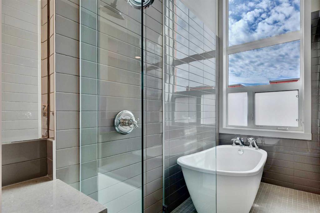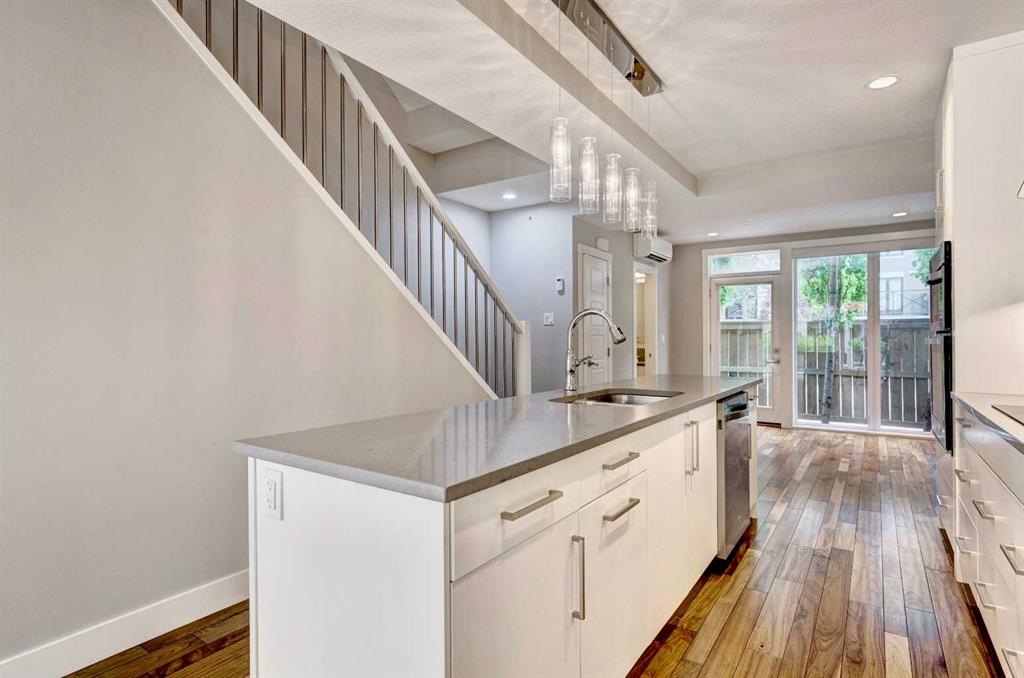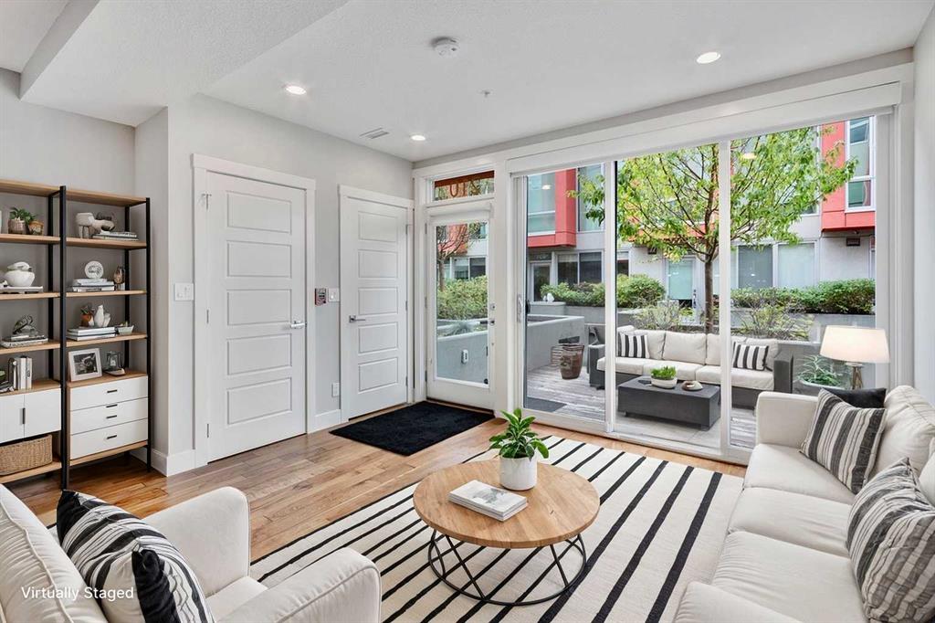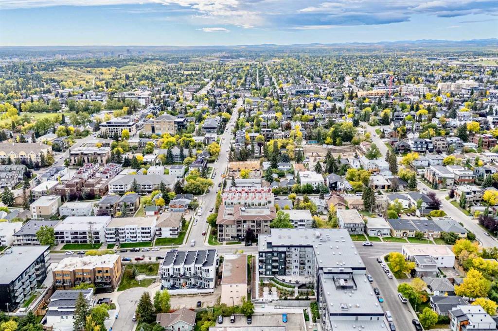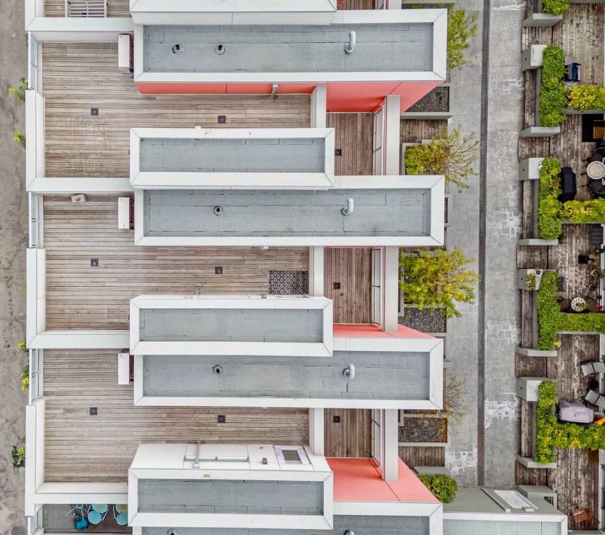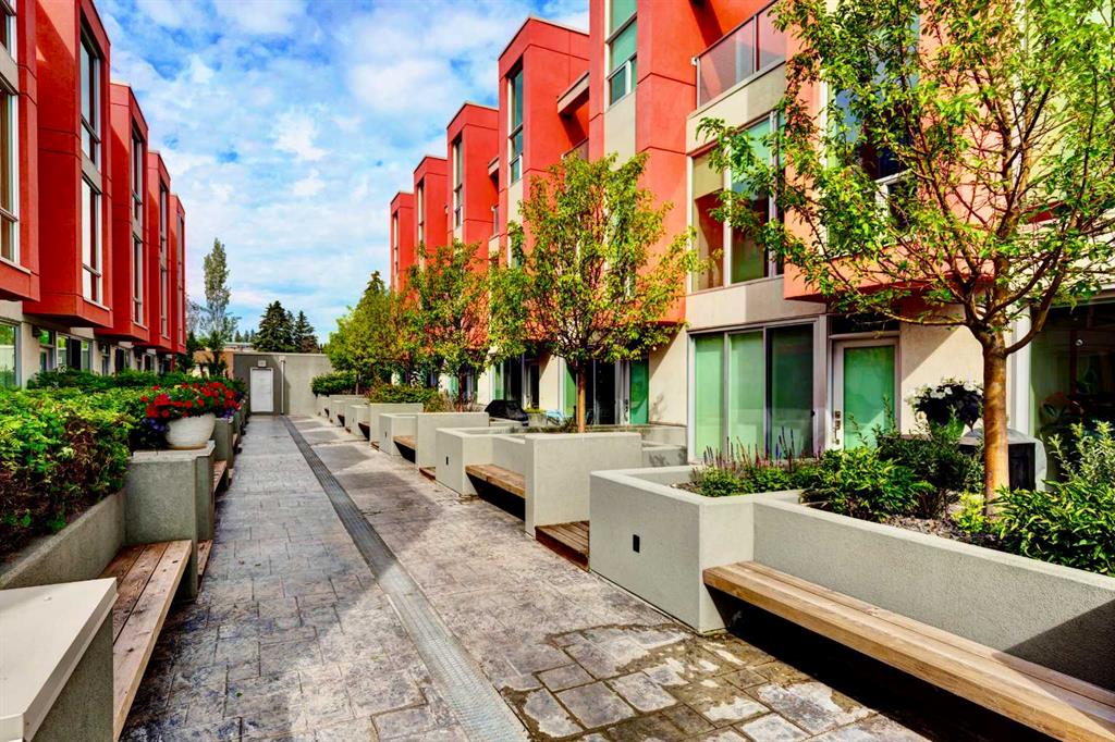 OPEN HOUSE SUN 2-4 PM. Tucked into the heart of Marda Loop, this four-level concrete and steel townhome offers a rare balance of architectural edge and everyday calm. Solid construction, thoughtful separation of space, and a layout designed for how people actually live. The main level is open and light-filled, with high ceilings, hardwood floors, and in-floor heating throughout. The kitchen and dining space flow naturally toward a private front patio—an easy extension of the living area and a natural spot to start or end the day. Two well-proportioned bedrooms, a full bath with heated floors, and a dedicated laundry room occupy the second level, keeping daily life efficient and uncluttered. The entire third floor is reserved for a primary retreat that feels intentionally removed from the rest of the home. A generous walk-in closet, spa-inspired ensuite, and private deck create a space that’s equal parts functional and restorative. Above it all, the rooftop patio offers downtown views and a quiet vantage point over the city—one of three outdoor spaces that make this home feel expansive and connected to its surroundings. The building is well run and notably quiet, with two indoor heated parking stalls and condo fees that include everything except electricity and cable, simplifying ownership. Steps from cafés, shops, and local favourites, and minutes to downtown, this is inner-city living with intention—refined, walkable, and quietly confident. Some photos may be virtually staged and/or from an identical unit in the complex.
