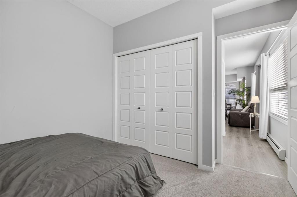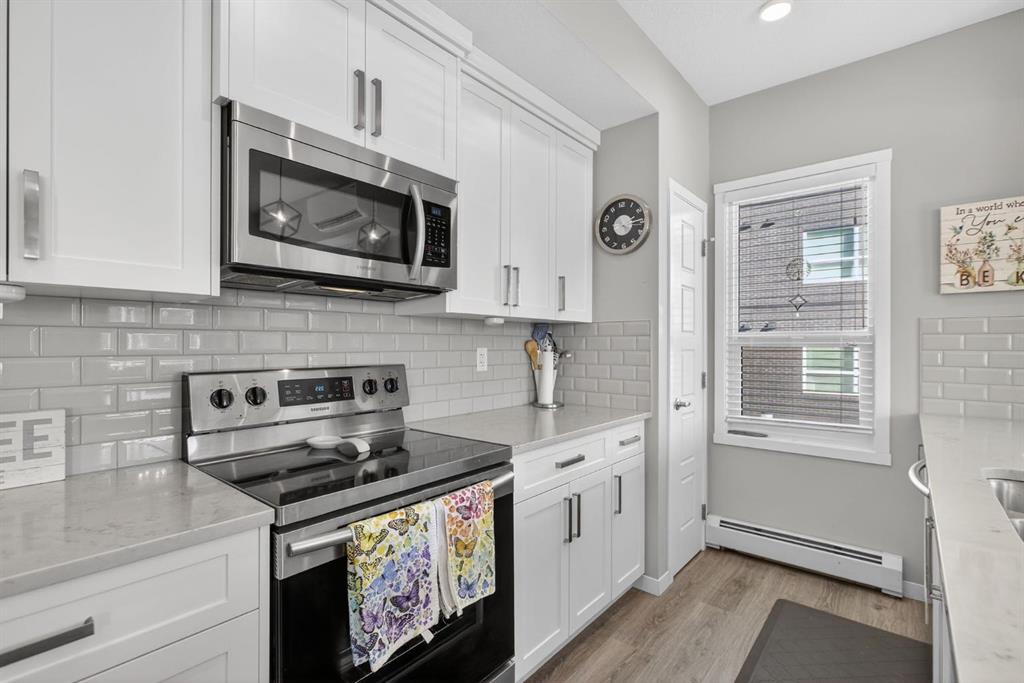 Welcome home to Seton Park Place II! This bright second-floor CORNER UNIT faces south and east, flooding the space with natural sunlight throughout the day — perfect for boosting both your mood and overall well-being. Offering 1,068 sq ft, this beautifully appointed condo features 2 bedrooms and 2 full bathrooms, along with one titled heated UNDERGROUND PARKING stall and TWO storage lockers — a rare and valuable bonus. Inside, you’ll love the abundance of windows, 9’ ceilings, luxury VINYL PLANK flooring, and the comfort of AIR CONDITIONING. The modern kitchen is designed for both style and function, complete with an extended island, QUARTZ countertops, and STAINLESS STEEL appliances — ideal for entertaining or everyday living. Step out from the dining area onto the wrap-around balcony and take in the open views. The spacious primary suite includes a 4-piece ensuite and a generous walk-in closet. A second bedroom and full bath provide flexibility for guests, family, or a home office. You’ll also appreciate the convenience of full-size in-suite laundry and ample in-unit storage. This well-maintained, professionally managed complex offers reasonable condo fees and is pet-friendly (with board approval). The location truly is unbeatable. Situated in the heart of Seton, you’re within a 10–15 minute walk to the YMCA, Cineplex, Superstore, restaurants, shops, walking paths, playgrounds, and more exciting amenities still to come. Enjoy a quick commute to the South Health Campus and easy access to Deerfoot and Stoney Trail. Urban convenience meets lifestyle living — all in one exceptional home.