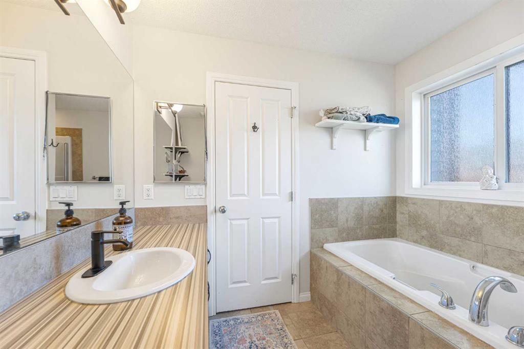 Upstairs, you’ll find a serene primary retreat with a luxurious ensuite boasting a soaker tub and separate shower. Two generously sized bedrooms and a full 4-piece bathroom complete the upper level.