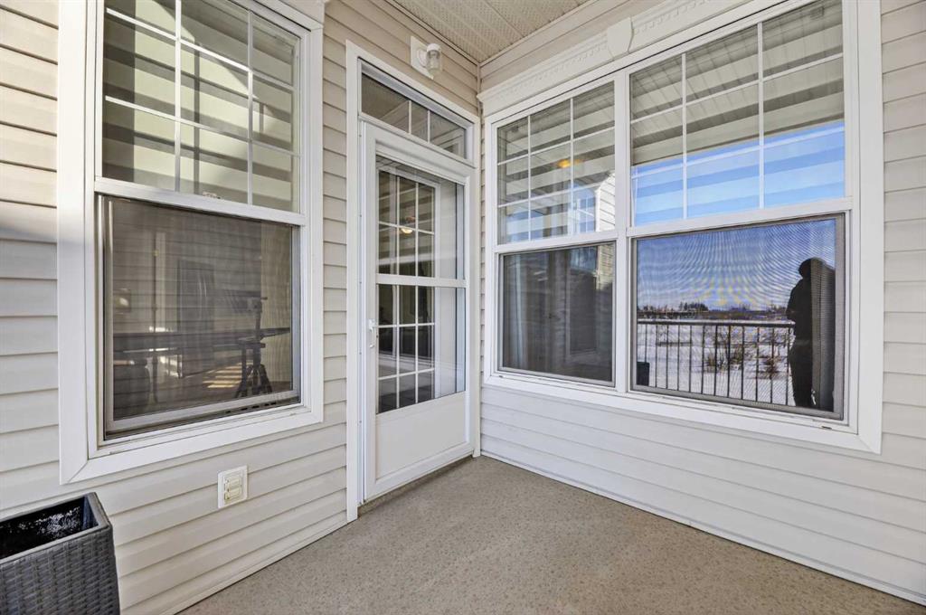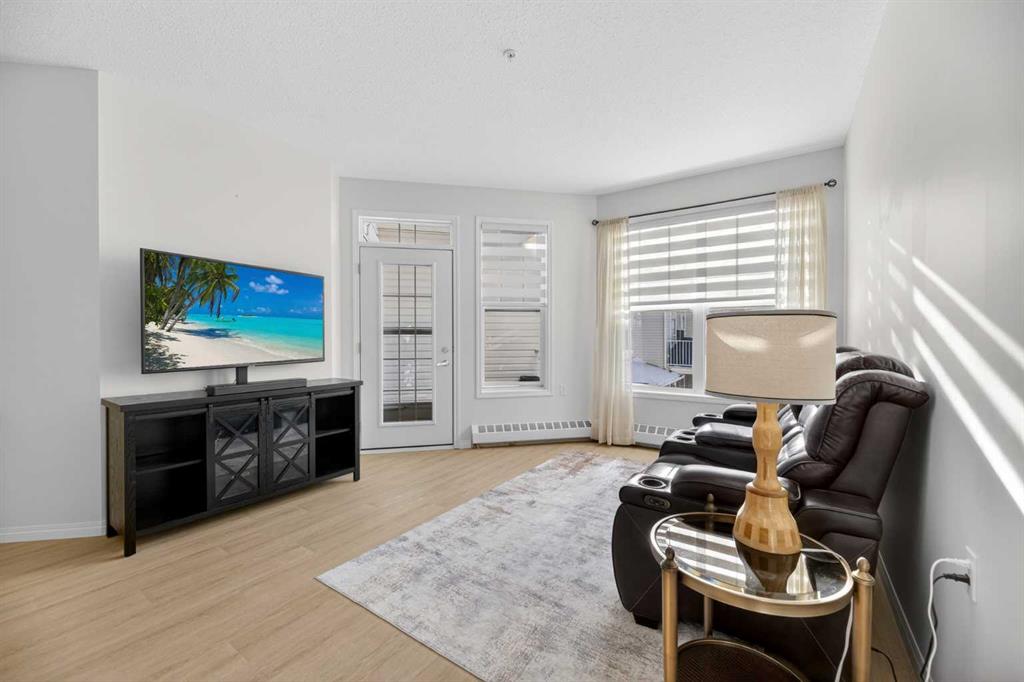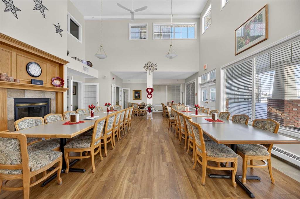 UPDATED, BRIGHT, MOVE-IN READY AND SURE TO IMPRESS LEGACY VILLAGE condo located in the HEART of Olds! Your tastefully updated & IMMACULATE second storey 2 BED + 2 BATH home with covered 9×7 balcony overlooking the west gardens/greenspace is the PRIME location in this sought-after and prestigious 55+ FRIENDLY & well-managed complex. Your new home also comes w/ ONE outdoor parking stall just steps from the front entrance. The 55+ complex has absolutely ALL of the LUXURY AMENITIES you would require including an owners’ lounge with fireplace, a kitchen facility, dining room (seats 50), shuffleboard, billiards, workshop, well-equipped fitness room, puzzle/games room, library room, hair salon, and laundry facility for the bigger loads, etc… PLUS, you have access to TWO rental guest suites for only $65.00 per night when family or friends come to visit. As you enter your BRIGHT, warm and inviting condo you are greeted by a nice sized entrance with mirrored closet…your OPEN LAYOUT features the kitchen off to the side which is open to the living & dining areas that separate the bedrooms – absolute perfect set up for entertaining family & friends! Your LARGE primary bedroom retreat features a spa-like en suite w/ large walk-in tub & shower combo and extra storage cabinets. You will also love the storage your walk-in closet provides. Your second bedroom (or office) is the perfect size, and is located across from the main 3-piece bath. Enjoy the convenience of a generous sized laundry room w/ built-in cabinets, and full sized washer & dryer. The luxurious updates throughout your new home include NEW paint throughout, luxury vinyl plank, carpet, stainless steel appliances, quartz kitchen countertops, modern white subway tile back splash, beautiful spa-like washroom updates, baseboards, updated lighting, designer window coverings, outdoor sun shade on balcony, etc……YOUR NEW HOME LITERALLY HAS IT ALL! Sit back and relax whilst enjoying a nice drink on your covered balcony that overlooks the beautiful garden area. This complex is ADULT LIFESTYLE at its absolute FINEST! Feel like being social? Each night the complex offers different social activities such as bingo, movie night, crib/cards, happy hour, etc…. Feel like going out? You are minutes away from all of the conveniences that family-friendly Olds has to offer — grocery stores, clothing shops, restaurants, Olds College, historic theater, and all emergency services (Olds Hospital, etc.). Quick access to Highway 2, and Calgary airport is only 60 mins away! Don’t miss out on the opportunity to wake up to the warmth and aesthetic pleasures of Legacy Village — it feels like being on VACATION every single day! NOTE; CONDO FEES INCLUDE ALL UTILITIES — PLUS CABLE!! Your unit also comes with it’s own assigned storage locker! Enjoy a safe and quiet environment in your very well kept & well-managed complex– not many units come available in this complex. You will LOVE this JEWEL OF A HOME!