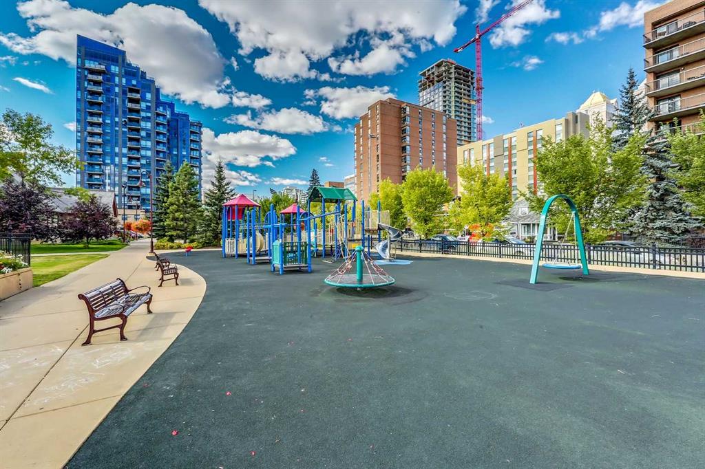 Beautifully UPDATED Immaculate, bright & freshly PAINTED 2-bedroom END UNIT offering Stylish URBAN living in this well-managed building. Located in one of Calgary’s most walkable communities. The open layout flows easily, offering endless options for your personal style & furnishings. Modern kitchen features GRANITE counters, SS appliances, NEW upper cabinet & the convenience of IN-SUITE LAUNDRY & PANTRY in a separate room off the kitchen. Bedrooms are spacious & filled with natural light. The refreshed 4-piece bathroom features travertine counter & a NEW tub & tile. NEW lighting throughout & bdr CEILING FANS adds to the clean modern feel. Step out onto your QUIET & VERY PRIVATE WEST-facing balcony, perfect for winding down at the end of the day. Located along a picturesque, tree-lined one-way street with a BIKE LANE – yet just 2 blocks from iconic 17th Ave’s endless shops, cafés & restaurants & an easy walk to Downtown. With exceptional storage (multiple closets + a separate storage unit), a well-run building, convenient parking stall just steps to the back door & only 1 flight up to your unit, this home offers the perfect blend of SYYLE, COMFORT & UNBEATABLE LOCATION.