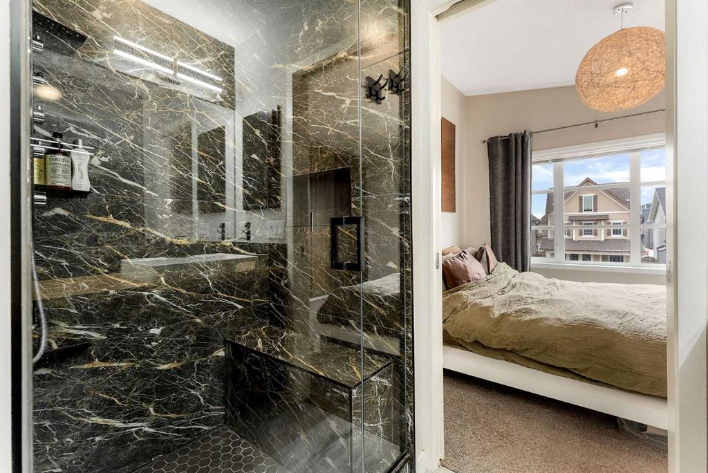 Upstairs, the spa-inspired ensuite delivers standout luxury with a custom walk-in steam shower, rainfall showerhead, frameless glass enclosure, oversized tilework, a soaker tub, a double vanity with an LED mirror, and motion-sensor lighting. Thoughtful storage solutions continue throughout with closet organizers, built-in shelving, a mudroom with custom storage, and an organized laundry space featuring a Samsung washer and dryer.