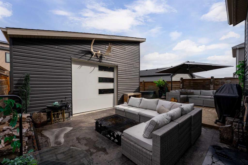 Outdoor living is where this home truly shines. Enjoy a custom deck with frameless glass railings, a private hot tub retreat with privacy screen, and a sunken firepit with built-in seating, all surrounded by professional landscaping, horizontal privacy fencing, solar and wired exterior lighting, and permanent Celebrite holiday lighting. The stamped concrete pad, featuring a compass inlay and upgraded alley access, further elevates the exterior appeal.