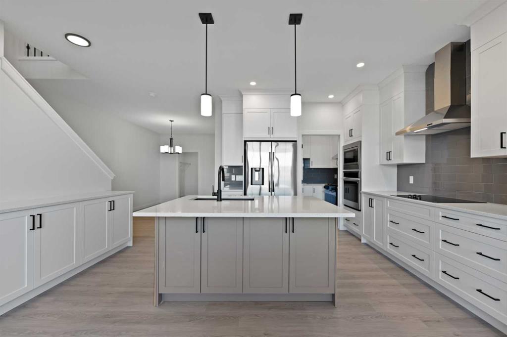 Great Opportunity for a Big Family, 5 bedroom, including 2 master bedroom and main floor bedroom with full washroom , extended kitchen with spice kitchen avaible in north east. Double car garage Brand new house, never lived in, with New Home warranty. Main floor features Bedroom and full washroom with living room and extended kitchen and spice kitchen( with electric cooktop built in and gas stove with built in wall oven and microwave and separate entrance to Basement(with 3 egress windows).Backyard has finished deck and for privacy the backyard has no attached neighbours from behind(rare to find). Upper floor has 2 master bedroom, bonus room, laundry(5 bedroom in total and 4 full washroom). House is located in the nice community of North east in Calgary Alberta for a bigger family.