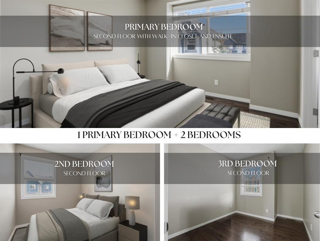 Upstairs, the home offers a well-balanced 3-bedroom layout designed for comfort and privacy. The primary bedroom features a walk-in closet and private 3-piece ensuite, while two additional good-sized bedrooms provide flexibility for family, guests, or a home office. A full 4-piece bathroom and upper-level closet laundry add everyday convenience.